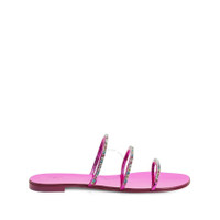 Giuseppe Zanotti Ladies Sandals. SKU: I300017-005-PINK. Color: Pink. Giuseppe Zanotti Dark Colorful Rhinestone-Embellished Sandals. Crafted from mirror-effect synthetic fabric, these shoes feature a silver metal chain adorned with multicoloured rhinestones, a laminated leather sole with a logo, and strap detailing. They have a patent finish, an open toe, a branded leather insole, and a flat leather sole. The slip-on style completes the design. Made in Italy. Please visit the brand website for sizing information. INFORMATION Brand: Giuseppe Zanotti Model: I300017-005-PINK Gender: Womens DETAILS Category: Sandals Color: Pink Upper Material: Polyurethane Sole Material: Leather ADDITIONAL INFO Jomashop Sku: -I300017005PINK Department: Shoes
