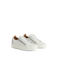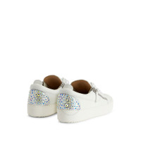 Giuseppe Zanotti Ladies Sneakers. SKU: RS40007-001-WHITE. Color: White. Giuseppe Zanotti Gail Rhinestone-Embellished Leather Sneakers. A pair of Gail leather sneakers featuring silver-tone hardware, rhinestone embellishments, and a logo plaque on the tongue. They have a round toe, front lace-up fastening, side zip fastening, a branded insole, and a flat rubber sole. Please visit the brand website for sizing information. INFORMATION Brand: Giuseppe Zanotti Model: RS40007-001-WHITE Gender: Womens DETAILS Category: Sneakers Shoe Style: Low Top Shoe Style: Low Top Color: White Shoe Vamp Style: Lace-up Upper Material: Leather Sole Material: Rubber ADDITIONAL INFO Jomashop Sku: -RS40007001WHITE Department: Shoes