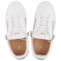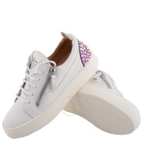 Giuseppe Zanotti Ladies Sneakers. SKU: RS40007-003-WHITE. Color: White. Giuseppe Zanotti Gail Rhinestone-Embellished Leather Sneakers. A pair of Gail leather sneakers featuring silver-tone hardware, rhinestone embellishments, and a logo plaque on the tongue. They have a round toe, front lace-up fastening, side zip fastening, a branded insole, and a flat rubber sole. Outer: 100% Leather. Made in Italy. Please visit the brand website for sizing information. INFORMATION Brand: Giuseppe Zanotti Model: RS40007-003-WHITE Gender: Womens DETAILS Category: Sneakers Shoe Style: Low Top Shoe Style: Low Top Color: White Shoe Vamp Style: Lace-up Upper Material: Leather Sole Material: Rubber ADDITIONAL INFO Jomashop Sku: -RS40007003WHITE Department: Shoes