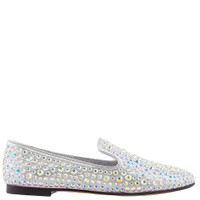 Giuseppe Zanotti Ladies Loafers. SKU: E460000-004-SILVER. Color: Silver. Giuseppe Zanotti Rhinestone Embellised Loafers. These loafers, in a lovely silver hue, feature delicate beading that sparkles, a classic almond toe, slip-on style, and a branded leather insole and sole. Made in Italy. Please visit the brand website for sizing information. INFORMATION Brand: Giuseppe Zanotti Model: E460000-004-SILVER Gender: Womens DETAILS Category: Loafers Shoe Style: Round Toe Shoe Style: Round Toe Color: Silver Shoe Vamp Style: Slip-on Sole Material: Leather ADDITIONAL INFO Jomashop Sku: -E460000004SILVER Department: Shoes