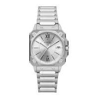 Silver-tone stainless steel case and bracelet. Fixed silver-tone stainless steel bezel. Silver-tone dial with silver-tone hands and Roman & index hour markers. Minute scale around the inner rim. Dial Type: Analog. Date display at the 3 o'clock position. Quartz movement. Scratch resistant sapphire crystal. Solid case back. Round case shape, case size: 30 mm. Fold over clasp with a safety release. Water resistant at 50 meters / 165 feet. Functions: date, hour, minute, second. G-flat Series. Casual watch style. Watch label: Swiss Made. Gucci G-Flat Quartz Silver Dial Ladies Watch YA166504. GENERAL Box Type: Original Box Brand Type: Designer CASE Case Material: Stainless Steel Case Shape: Round Case Back: Solid BAND Band Material: Stainless Steel Band Type: Bracelet Band Color: Silver-tone Clasp: Fold Over with Safety Release DIAL Dial Color: Silver-tone Type: Analog Crystal: Scratch Resistant Sapphire Hands: Silver-tone Dial Markers: Roman & Index Second Markers: Minute Scale around the inner rim Bezel: Fixed Bezel Color: Silver-tone Bezel Material: Stainless Steel INFORMATION Brand: Gucci Series: G-Flat Collection Name: G-Flat Gender: Womens Model: YA166504 Watch Label: Swiss Made Movement: Quartz FEATURES Water Resistance: 50 meters / 165 feet Calendar: Date display at the 3 o'clock position Functions: Date, Hour, Minute, Second Watch Features: Analog, Stainless Steel ADDITIONAL INFO Watch Style: Casual Warranty: 2 Year Jomashop Warranty Jomashop Sku: GCYA166504 Department: Watches