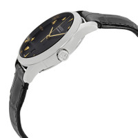 Silver-tone stainless steel case with a black alligator leather strap. Fixed stainless steel bezel. Black dial with gold-tone hands and index hour markers. Dial Type: Analog. Date display at the 6 o'clock position. ETA 2824 automatic movement. Scratch resistant sapphire crystal. Transparent case back. Round case shape, case size: 38 mm, case thickness: 8 mm. Water resistant at 50 meters / 165 feet. Functions: date, hour, minute, second. Dress watch style. Watch label: Swiss Made. Gucci G-Timeless Automatic Black Dial Ladies Watch YA126469. GENERAL Box Type: Original Box Brand Type: Designer CASE Case Diameter: 38 mm Case Thickness: 8 mm Case Material: Stainless Steel Case Shape: Round Case Back: Transparent BAND Band Material: Alligator Leather Band Type: Strap Band Color: Black DIAL Dial Color: Black Type: Analog Crystal: Scratch Resistant Sapphire Hands: Gold-tone Dial Markers: Index Bezel: Fixed Bezel Material: Stainless Steel INFORMATION Brand: Gucci Series: G-Timeless Collection Name: G-Timeless Gender: Womens Model: YA126469 Watch Label: Swiss Made Movement: Automatic Engine: ETA Caliber 2824 Power Reserve: 38 hours FEATURES Water Resistance: 50 meters / 165 feet Calendar: Date display at the 6 o'clock position Functions: Date, Hour, Minute, Second Watch Features: Alligator Leather, Analog, Gold, Leather, Stainless Steel ADDITIONAL INFO Watch Style: Dress Warranty: 2 Year Jomashop Warranty UPC Code: 731903382572 Jomashop Sku: GCYA126469 Department: Watches Category: Watches