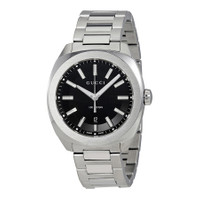 Stainless steel case with a stainless steel bracelet. Fixed stainless steel bezel. Black dial with luminous silver-tone hands and index hour markers. Minute markers around the outer rim. Dial Type: Analog. Luminescent hands and markers. Date display at the 6 o'clock position. Quartz movement. Scratch resistant mineral crystal. Screw down crown. Solid case back. Case size: 40 mm. Case thickness: 8 mm. Cushion case shape. Band width: 23 mm. Band length: 9 inches. Deployment clasp with a push button release. Water resistant at 100 meters / 330 feet. Functions: hour, minute, second. Casual watch style. Watch label: Swiss Made. Gucci GG2570 Black Dial Men's Watch YA142301. INFORMATION Brand: Gucci Series: Gg2570 Collection Name: GG2570 Gender: Mens Model: YA142301 Watch Label: Swiss Made Movement: Quartz CASE Case Size: 40 mm Case Thickness: 8 mm Case Material: Stainless Steel Case Shape: Cushion Case Back: Solid BAND Band Material: Stainless Steel Band Type: Bracelet Band Color: Silver-tone Band Length: 9 inches Band Width: 23 mm Clasp: Deployment with Push Button Release DIAL Dial Color: Black Type: Analog Crystal: Scratch Resistant Mineral Hands: Luminous Silver-tone Dial Markers: Index Second Markers: Minute Markers around the outer rim Luminiscence: Hands and Markers Bezel: Fixed Bezel Color: Silver-tone Bezel Material: Stainless Steel Crown: Screw Down FEATURES Water Resistance: 100 meters / 330 feet Calendar: Date display at the 6 o'clock position Functions: Hour, Minute, Second Watch Features: Stainless Steel, Analog ADDITIONAL INFO Watch Style: Casual Warranty: 2 Year Jomashop Warranty UPC Code: 731903382381 Jomashop Sku: GCYA142301 Department: Watches Category: Watches