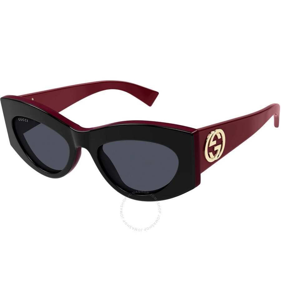 Gucci Sunglasses. Series number: GG1843S. Color code: 006. Shape: Cat Eye. Lens Width: 53 mm. Lens Bridge: 20 mm. Arm Length: 140 mm. 100% UV protection. Non-Polarized. Frame Material: Recycled Acetate. Frame Color: Black/Burgundy. Lenses Type: Grey. Rim Style: Full-Rim. UPC/EAN code: 889652528847. Gucci Grey Cat Eye Ladies Sunglasses GG1843S 006 53. Manufacturer's Packaging Included. Packaging Size And Color May Vary. DETAILS Lens Width (mm): 53 Arm Length (mm): 140 mm Lens Bridge (mm): 20 Series Number: GG1843S Frame Color: Black/Burgundy Color Code: 006 Lens: Grey UV Protection: 100% UV Protection Rim Style: Full-Rim Frame Shape: Cat Eye Frame Material: Acetate GENERAL Size: 53 mm Brand Type: Designer INFORMATION Brand: Gucci Gender: Womens Model: GG1843S 006 53 ADDITIONAL INFO UPC Code: 889652528847 Jomashop Sku: Z-Z6WYX Department: Sunglasses