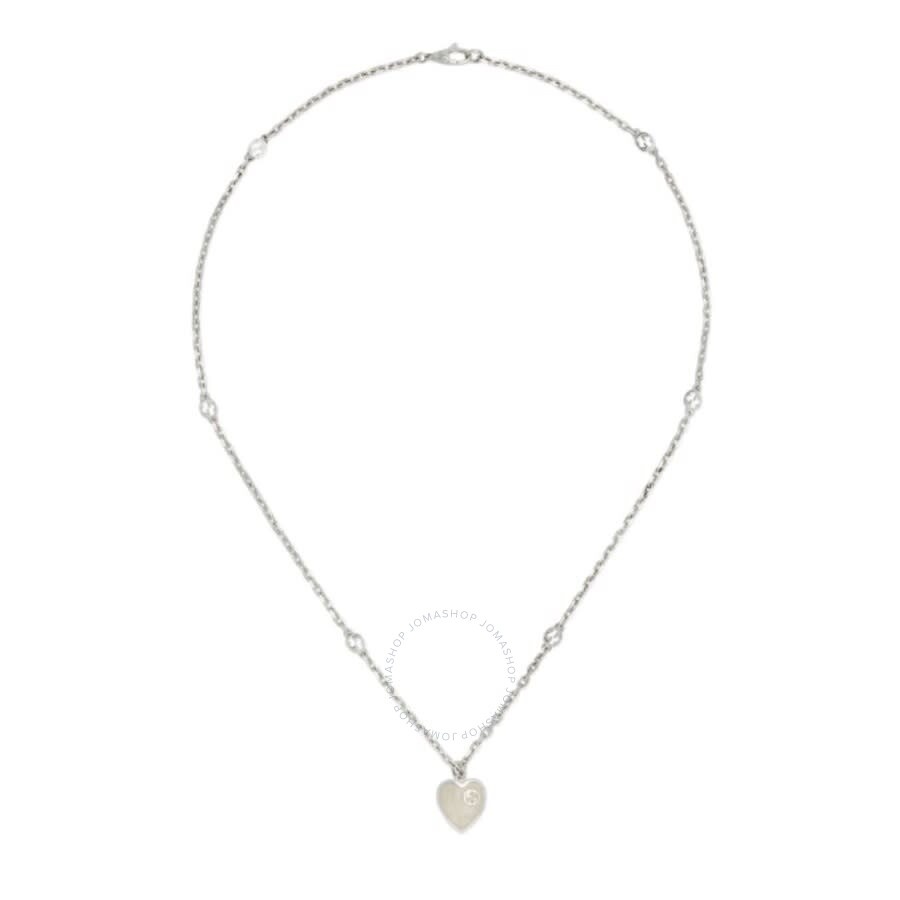 Gucci Ladies Necklaces. Gucci Heart series. SKU: YBB645545003. Color: Silver-tone. Metal Type: Sterling Silver. Metal Stamp: 925-Sterling. Gem stone type: None. Necklace style: 1 Band. Gucci Heart Necklace With Interlocking G - Ybb645545003. GENERAL Item Variation: YBB64554500300U Color: Silver-tone Collection Name: Gucci Heart INFORMATION Brand: Gucci Series: Gucci Heart Gender: Womens Model: YBB645545003 DETAILS Size Info: 18 inches Necklaces: 1 Band Material : Sterling Silver Metal Stamp: 925-Sterling ADDITIONAL INFO Jomashop Sku: GCYBB645545003 Department: Jewelry Category: Necklaces