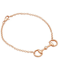Gucci celebrates the 20th anniversary of its signature Horsebit jewelry collection with classic and iconic pieces in 18k rose gold adorned with diamonds. This chain Horsebit bracelet, featuring a distinctive Horsebit motif and a clasp closure, is enriched by a central sparkling white diamond. Gucci Ladies Bracelets. SKU: YBA796174001. Color: Rose Gold-tone. Metal Type: Rose Gold. Metal Stamp: 18k. Gem stone type: Diamond. Bracelet style: 1 Band. Gucci Horsebit Diamond Chain Bracelet in 18K Rose Gold - YBA796174001. GENERAL Color: Rose Gold-tone INFORMATION Brand: Gucci Gender: Womens Model: YBA796174001 DETAILS Size Info: 7 inches Bracelet Style : 1 Band Material : Rose Gold Metal Stamp: 18K Stone Type: Diamond Stone Origin: Natural ADDITIONAL INFO Jomashop Sku: Y-A4TMK Department: Jewelry Category: Bracelets