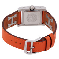 Silver-tone stainless steel case with a orange leather strap. Fixed silver-tone stainless steel bezel. Opaline silver dial with silver-tone hands. Dial Type: Analog. Quartz movement. Scratch resistant sapphire crystal. Pull / push crown. Solid case back. Square case shape, case size: 23 mm x 23 mm. Buckle clasp. Water resistant at 30 meters / 100 feet. Functions: hour, minute. Medor Pm Series. Watch label: Swiss Made. Hermes Medor PM Quartz Ladies Watch 028326WW00. GENERAL Brand Type: Designer CASE Case Size: 23 Case Material: Stainless Steel Case Shape: Square Case Back: Solid BAND Band Material: Leather Band Type: Strap Band Color: Orange Clasp: Buckle DIAL Dial Color: Opaline Silver Type: Analog Crystal: Scratch Resistant Sapphire Hands: Silver-tone Bezel: Fixed Bezel Color: Silver-tone Bezel Material: Stainless Steel Crown: Pull / Push INFORMATION Brand: Hermes Series: Medor Pm Collection Name: Medor PM Gender: Womens Model: 028326WW00 Watch Label: Swiss Made Movement: Quartz FEATURES Water Resistance: 30 meters / 100 feet Functions: Hour, Minute Watch Features: Stainless Steel, Leather, Analog ADDITIONAL INFO Warranty: 2 Year Jomashop Warranty Jomashop Sku: HS028326WW00 Department: Watches