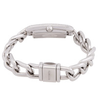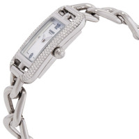 Silver-tone stainless steel case and bracelet. Fixed silver-tone diamond set stainless steel; 186 diamonds (0.58 ct) bezel. White mother of pearl dial with silver-tone hands and diamond-Arabic numeral hour markers. Dial Type: Analog. Quartz movement. Scratch resistant sapphire crystal. Pull / push crown. Solid case back. Rectangle case shape, case size: 29 x 17 mm. Water resistant at 30 meters / 100 feet. Functions: hour, minute. Nantucket Series. Luxury watch style. Watch label: Swiss Made. Hermes Nantucket Small Model Quartz Diamond Ladies Watch 059586WW00. GENERAL Box Type: Original Box Brand Type: Designer CASE Case Diameter: 17 mm Case Material: Stainless Steel Case Shape: Rectangle Case Back: Solid BAND Band Material: Stainless Steel Band Type: Bracelet Band Color: Silver-tone DIAL Dial Color: White Mother of Pearl Type: Analog Crystal: Scratch Resistant Sapphire Hands: Silver-tone Dial Markers: Diamond-Arabic Numeral Bezel: Fixed Bezel Color: Silver-tone Bezel Material: Diamond Set Stainless Steel, 186 diamonds (0.58 ct) Crown: Pull / Push INFORMATION Brand: Hermes Series: Nantucket Collection Name: Nantucket Gender: Womens Model: 059586WW00 Watch Label: Swiss Made Movement: Quartz FEATURES Water Resistance: 30 meters / 100 feet Functions: Hour, Minute Watch Features: Analog, Stainless Steel, Diamond ADDITIONAL INFO Watch Style: Luxury Warranty: 2 Year Jomashop Warranty Jomashop Sku: Z-N7QFG Department: Watches