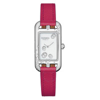 Silver-tone stainless steel case with a pink leather strap. Fixed silver-tone stainless steel bezel. White dial with silver-tone hands. Dial Type: Analog. Quartz movement. Scratch resistant sapphire crystal. Pull / push crown. Solid case back. Rectangle case shape, case size: 17 x 23mm. Water resistant at 30 meters / 100 feet. Functions: hour, minute. Nantucket Series. Luxury watch style. Watch label: Swiss Made. Hermes Nantucket Sprinkling Of Anchor Chain Quartz White Dial Ladies Watch 052183Ww00. GENERAL Box Type: Original Box Brand Type: Designer CASE Case Diameter: 23 Case Material: Stainless Steel Case Shape: Rectangle Case Back: Solid BAND Band Material: Leather Band Type: Strap Band Color: Pink DIAL Dial Color: White Type: Analog Crystal: Scratch Resistant Sapphire Hands: Silver-tone Bezel: Fixed Bezel Color: Silver-tone Bezel Material: Stainless Steel Crown: Pull / Push INFORMATION Brand: Hermes Series: Nantucket Collection Name: Nantucket Gender: Womens Model: 052183WW00 Watch Label: Swiss Made Movement: Quartz FEATURES Water Resistance: 30 meters / 100 feet Functions: Hour, Minute Watch Features: Analog, Leather, Stainless Steel ADDITIONAL INFO Watch Style: Luxury Warranty: 2 Year Jomashop Warranty Jomashop Sku: Z-RXRLJ Department: Watches