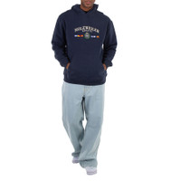 Holzweiler Men's Tops. Fashion category: Hoodies & Sweatshirts. SKU: 17074-1355. Color: Dk. Blue. Holzweiler Men's Dk. Blue Fleece Cooper Regatta Hoodie. Crafted from fleece cotton blend, this hoodie features a classic hood, long sleeves, straight hem, ribbed trims, kangroo pocket, and finished with embroidered patches on the front. 70% organic cotton, 30% recycled polyester. Made in Portugal. GENERAL Color: Dk. Blue INFORMATION Brand: Holzweiler Gender: Mens Model: 17074-1355 DETAILS Category: Tops Apparel Type: Hoodies & Sweatshirts ADDITIONAL INFO Jomashop Sku: -170741355N Department: Apparel