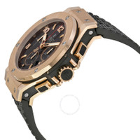 18kt rose gold gold case with a black rubber strap. Fixed 18kt rose gold bezel. Black dial with luminous rose gold skeleton hands and alternating Arabic numeral and index hour markers. Minute markers around the outer rim. Dial Type: Analog. Luminescent hands and markers. Date display between the 4 and 5 o'clock positions. Chronograph - three sub-dials displaying: 60 second, 30 minute and 12 hour. Hublot calibre HUB4100 automatic movement, based upon ETA 2894-2, containing 27 Jewels, composed of 252 parts, bitting at 28800 vph, and has a power reserve of approximately 42 hours. Scratch resistant sapphire crystal. Screw down crown. Transparent case back. Round case shape. Case size: 44 mm. Case thickness: 14.5 mm. Band width: 22.9 mm. Band length: 9 inches. Deployment clasp. Water resistant at 100 meters / 330 feet. Functions: chronograph, date, hour, minute, second. Dress watch style. Watch label: Swiss Made. Item Variations: 301.PX.130.RX, 301-PX-130-RX, 301/PX/130/RX, 301PX130RX. Hublot Big Bang 18kt Rose Gold Black Dial Black Rubber Men's Watch 301PX130RX. GENERAL Box Type: Original Box Color: Black / Gold / Rose / Skeleton CASE Case Size: 44 Case Thickness: 14.5 mm Case Material: Gold Case Shape: Round Case Back: Transparent BAND Band Material: Rubber Band Type: Strap Band Color: Black Band Length: 9 inches Band Width: 22.9 mm Clasp: Deployment DIAL Dial Color: Black Type: Analog Crystal: Scratch Resistant Sapphire Hands: Luminous Rose Gold Skeleton Dial Markers: Alternating Arabic Numeral and Index Second Markers: Minute markers around the outer rim Sub Dials: Three - 60 Second, 30 Minute and 12 Hour Luminiscence: Hands and Markers Bezel: Fixed Bezel Color: 18kt Rose Bezel Material: Gold Crown: Screw Down INFORMATION Brand: Hublot Series: Big Bang Collection Name: Big Bang Gender: Mens Model: 301.PX.130.RX Watch Label: Swiss Made Movement: Automatic Engine: Hublot Calibre HUB4100 Power Reserve: 42 hours FEATURES Water Resistance: 100 meters / 330 feet Calendar: Date display between 4 and 5 o'clock position Functions: Chronograph, Date, Hour, Minute, Second Watch Features: Analog, Gold, Rubber, Chronograph ADDITIONAL INFO Watch Style: Dress Warranty: 2 Year Jomashop Warranty Jomashop Sku: HB301PX130RX Item Variation: 301.PX.130.RX, 301-PX-130-RX, 301/PX/130/RX, 301PX130RX Department: Watches Category: Watches