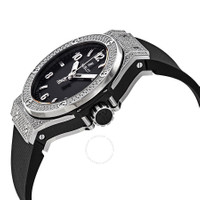 Stainless steel case case with a black rubber strap. Diamond-set lugs. Fixed stainless steel bezel set with diamonds. Case center (edge) lateral black composite resin inserts. Black dial with luminous silver-tone hands and alternating Arabic numeral and index hour markers. Minute markers around the outer rim. Dial Type: Analog. Luminescent hands and markers. Caliber HUB 2900 quartz movement. Scratch resistant sapphire crystal. Pull / push crown. Solid case back. Round case shape, case size: 38 mm. Deployment clasp with a push button release. Water resistant at 100 meters / 330 feet. Functions: hour, minute, second. Big Bang Series. Luxury watch style. Watch label: Swiss Made. Item Variations: 361 SX 1270 RX 1704, 361-SX-1270-RX-1704, 361/SX/1270/RX/1704, 361SX1270RX1704. Hublot Big Bang Black Dial Black Rubber Ladies Watch 361.SX.1270.RX.1704. GENERAL Color: Black INFORMATION Brand: Hublot Series: Big Bang Collection Name: Big Bang Gender: Womens Model: 361.SX.1270.RX.1704 Watch Label: Swiss Made Movement: Quartz Engine: Caliber HUB 2900 CASE Case Size: 38 mm Case Material: Stainless Steel Case Case Shape: Round Case Back: Solid BAND Band Material: Rubber Band Type: Strap Band Color: Black Clasp: Deployment with Push Button Release DIAL Dial Color: Black Type: Analog Crystal: Scratch Resistant Sapphire Hands: Luminous Silver-tone Dial Markers: Alternating Arabic Numeral and Index Second Markers: Minute Markers around the outer rim Luminiscence: Hands and Markers Bezel: Fixed Bezel Material: Stainless Steel set with Diamonds Crown: Pull / Push FEATURES Water Resistance: 100 meters / 330 feet Functions: Hour, Minute, Second Watch Features: Diamond, Stainless Steel, Rubber, Analog ADDITIONAL INFO Watch Style: Luxury Warranty: 2 Year Jomashop Warranty Jomashop Sku: HB361SX1270RX1704 Item Variation: 361 SX 1270 RX 1704, 361-SX-1270-RX-1704, 361/SX/1270/RX/1704, 361SX1270RX1704 Department: Watches Category: Watches