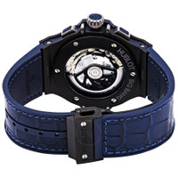 Black ceramic case with a blue (gummy) rubber strap with a (stiched) blue (alligator) leather top. Fixed black ceramic bezel. Blue sunray dial with luminous silver-tone hands and index hour markers. Arabic numeral minute markers (at 5 minute intervals). Minute markers around the outer rim. Dial Type: Analog. Luminescent hands and markers. Date display between the 4 and 5 o'clock positions. Chronograph - three sub-dials displaying: 60 second, 30 minute and 12 hour. Hublot calibre HUB4100 automatic movement, based upon ETA 2894-2, containing 27 Jewels, composed of 252 parts, bitting at 28800 vph, and has a power reserve of approximately 42 hours. Scratch resistant sapphire crystal. Pull / push crown. Transparent case back. Round case shape. Case size: 44 mm. Case thickness: 14.5 mm. Deployment clasp. Water resistant at 100 meters / 330 feet. Functions: chronograph, date, hour, minute, second. Big Bang Series. Luxury watch style. Watch label: Swiss Made. Hublot Big Bang Chronograph Automatic Blue Sunray Dial Men's Watch 301.CI.7170.LR. GENERAL Box Type: Original Box CASE Case Size: 44 Case Thickness: 14.5 mm Case Material: Ceramic Case Shape: Round Case Back: Transparent BAND Band Material: Gummy Rubber with a Blue (Alligator) Leather Top Band Type: Strap Band Color: Blue Clasp: Deployment DIAL Dial Color: Blue Sunray Type: Analog Crystal: Scratch Resistant Sapphire Hands: Luminous Silver-tone Dial Markers: Index Second Markers: Arabic Numeral Minute Markers (at 5 minute intervals). Minute Markers around the outer rim Sub Dials: Three - 60 Second, 30 Minute and 12 Hour Luminiscence: Hands and Markers Bezel: Fixed Bezel Color: Black Bezel Material: Ceramic Crown: Pull / Push INFORMATION Brand: Hublot Series: Big Bang Collection Name: Big Bang Gender: Mens Model: 301.CI.7170.LR Watch Label: Swiss Made Movement: Automatic Engine: Hublot Calibre HUB4100 Power Reserve: 42 hours FEATURES Water Resistance: 100 meters / 330 feet Calendar: Date display between the 4 and 5 o'clock positions Functions: Chronograph, Date, Hour, Minute, Second Watch Features: Alligator Leather, Analog, Ceramic, Leather, Rubber, Chronograph ADDITIONAL INFO Watch Style: Luxury Warranty: 2 Year Jomashop Warranty Jomashop Sku: HB301CI7170LR Department: Watches Category: Watches