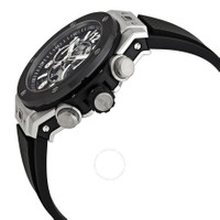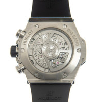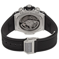 Grey titanium case with a black rubber strap. Fixed black ceramic bezel. Transparent dial with silver-tone hands and Arabic numeral hour markers. Arabic numeral minute markers (at 5 minute intervals). Minute markers around the outer rim. Dial Type: Analog. Luminescent hands and markers. Date display at the 3 o'clock position. Chronograph - two sub-dials displaying: 60 minute and 60 second. Hublot calibre HUB1280 automatic movement, containing 43 Jewels, composed of 354 parts, bitting at 28800 vph, and has a power reserve of approximately 72 hours. Scratch resistant sapphire crystal. Screw down crown. Transparent case back. Round case shape. Case size: 44 mm. Deployment clasp with a push button release. Water resistant at 100 meters / 330 feet. Functions: chronograph, column wheel, hour, minute, second. Additional Info: original box, international warranty card, manual (complete accessories). Big Bang Series. Luxury watch style. Watch label: Swiss Made. Hublot Big Bang Chronograph Automatic Men's Watch 421.NM.1170.RX. INFORMATION Brand: Hublot Series: Big Bang Collection Name: Big Bang Gender: Mens Model: 421.NM.1170.RX Watch Label: Swiss Made Movement: Automatic Engine: Hublot Calibre HUB1280 Power Reserve: 72 hours CASE Case Size: 44 mm Case Material: Titanium Case Shape: Round Case Back: Transparent BAND Band Material: Rubber Band Type: Strap Band Color: Black Clasp: Deployment with Push Button Release DIAL Dial Color: Transparent Type: Analog Crystal: Scratch Resistant Sapphire Hands: Silver-tone Dial Markers: Arabic Numeral Second Markers: Arabic Numeral Minute Markers (at 5 minute intervals). Minute Markers around the outer rim Sub Dials: Two - 60 Minute and 60 Second Luminiscence: Hands and Markers Bezel: Fixed Bezel Color: Black Bezel Material: Ceramic Crown: Screw Down FEATURES Water Resistance: 100 meters / 330 feet Calendar: Date display at the 3 o'clock position Functions: Chronograph, Column Wheel, Hour, Minute, Second Watch Features: Chronograph, Titanium, Rubber, Ceramic, Analog ADDITIONAL INFO Watch Style: Luxury Warranty: 2 Year Jomashop Warranty Additional Info: Original Box, Manual (Complete Accessories) Jomashop Sku: HB421NM1170RX Department: Watches Category: Watches