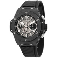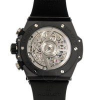 Black ceramic case with a black rubber strap. Fixed black ceramic bezel. Transparent dial with silver-tone hands and Arabic numeral hour markers. Minute markers around the outer rim. Dial Type: Analog. Luminescent hands and markers. Date display at the 3 o'clock position. Chronograph - two sub-dials displaying: 60 minute and 60 second. Hublot calibre HUB1280 automatic movement, containing 43 Jewels, composed of 354 parts, bitting at 28800 vph, and has a power reserve of approximately 72 hours. Scratch resistant sapphire crystal. Transparent see through case back. Round case shape. Case size: 42 mm. Deployment clasp with a push button release. Water resistant at 100 meters / 330 feet. Functions: chronograph, column wheel, hour, minute, second. Additional Info: original box, international warranty card, manual (complete accessories). Big Bang Series. Luxury watch style. Watch label: Swiss Made. Hublot Big Bang Chronograph Automatic Men's Watch 441.CI.1171.RX. INFORMATION Brand: Hublot Series: Big Bang Collection Name: Big Bang Gender: Mens Model: 441.CI.1171.RX Watch Label: Swiss Made Movement: Automatic Engine: Hublot Calibre HUB1280 Power Reserve: 72 hours CASE Case Size: 42 mm Case Material: Ceramic Case Shape: Round Case Back: Transparent BAND Band Material: Rubber Band Type: Strap Band Color: Black Clasp: Deployment with Push Button Release DIAL Dial Color: Black (Skeleton Center) Type: Analog Crystal: Scratch Resistant Sapphire Hands: Luminous Silver-tone Dial Markers: Arabic Numeral Second Markers: Arabic Numeral Minute Markers (at 5 minute intervals). Minute Markers around the outer rim Sub Dials: Two - 60 Minute and 60 Second Luminiscence: Hands and Markers Bezel: Fixed Bezel Color: Black Bezel Material: Ceramic FEATURES Water Resistance: 100 meters / 330 feet Calendar: Date display at the 3 o'clock position Functions: Chronograph, Column Wheel, Hour, Minute, Second Watch Features: Chronograph, Rubber, Ceramic, Analog ADDITIONAL INFO Watch Style: Luxury Warranty: 2 Year Jomashop Warranty Additional Info: Original Box, Manual (Complete Accessories) Jomashop Sku: HB441CI1171RX Department: Watches Category: Watches