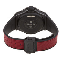 Black ceramic case with a red rubber strap. Fixed black ceramic bezel. Black dial with Arabic numeral hour markers. Minute scale around the inner rim. Dial Type: digital. Qualcomm Snapdragon Wear 4100+. Scratch resistant sapphire crystal. Solid case back. Round case shape, case size: 44 mm. Buckle clasp. Water resistant at 30 meters / 100 feet. Functions: month, date, day, hour, minute, second, gps, Bluetooth,. Big Bang Series. Sport watch style. Hublot Big Bang E FIFA World Cup Qatar 2022 Digital Black Dial Men's Watch 450.CI.1100.RX.FWC22. INFORMATION Brand: Hublot Series: Big Bang Collection Name: Big Bang Gender: Mens Model: 450.CI.1100.RX.FWC22 Engine: Qualcomm Snapdragon Wear 4100+ CASE Case Size: 44 mm Case Material: Ceramic Case Shape: Round Case Back: Solid BAND Band Material: Rubber Band Type: Strap Band Color: Red Clasp: Buckle DIAL Dial Color: Black Type: Digital Crystal: Scratch Resistant Sapphire Dial Markers: Arabic Numeral Second Markers: Minute Scale around the inner rim Bezel: Fixed Bezel Color: Black Bezel Material: Ceramic FEATURES Water Resistance: 30 meters / 100 feet Functions: Month, Date, Day, Hour, Minute, Second, GPS, Bluetooth, Watch Features: Rubber, Ceramic, Month, Bluetooth, GPS, Digital ADDITIONAL INFO Watch Style: Sport Warranty: 2 Year Jomashop Warranty Jomashop Sku: HB450CI1100RXFWC22 Department: Watches