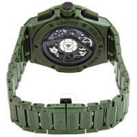 Green ceramic case and bracelet. Fixed green ceramic bezel. Matte green skeleton dial with green hands and index hour markers. Arabic numeral minute markers (at 5 minute intervals). Dial Type: Analog. Luminescent hands and markers. Date display at the 3 o'clock position. Chronograph - two sub-dials displaying: 60 minute and 60 second. Hublot Calibre HUB1280 Automatic movement, containing 43 Jewels, composed of 354 parts, bitting at 28800 vph, and has a power reserve of approximately 72 hours. Scratch resistant sapphire crystal. Screw down crown. Transparent case back. Round case shape, case size: 42 mm. Deployant buckle clasp. Water resistant at 100 meters / 330 feet. Functions: chronograph, column wheel, date, hour, minute, second. Big Bang Series. Luxury watch style. Watch label: Swiss Made. Hublot Big Bang Green Ceramic Chronograph Automatic Men's Watch 451.GX.5220.GX. CASE Case Size: 42 Case Material: Ceramic Case Shape: Round Case Back: Transparent BAND Band Material: Ceramic Band Type: Bracelet Band Color: Green Clasp: Deployant Buckle DIAL Dial Color: Matte Green Skeleton Type: Analog Crystal: Scratch Resistant Sapphire Hands: Green Dial Markers: Index Second Markers: Arabic Numeral Minute Markers (at 5 minute intervals) Sub Dials: Two - 60 Minute and 60 Second Luminiscence: Hands and Markers Bezel: Fixed Bezel Color: Green Bezel Material: Ceramic Crown: Screw Down INFORMATION Brand: Hublot Series: Big Bang Collection Name: Big Bang Gender: Mens Model: 451.GX.5220.GX Watch Label: Swiss Made Movement: Automatic Engine: Hublot Calibre HUB1280 Power Reserve: 72 hours FEATURES Water Resistance: 100 meters / 330 feet Calendar: Date display at the 3 o'clock position Functions: Chronograph, Column Wheel, Date, Hour, Minute, Second Watch Features: Analog, Ceramic, Chronograph ADDITIONAL INFO Watch Style: Luxury Warranty: 2 Year Jomashop Warranty Additional Info: LIMITED TO 250 Jomashop Sku: HB451GX5220GX Department: Watches Category: Watches