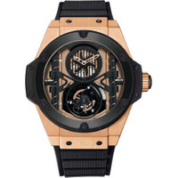 18kt king gold case with a black rubber strap. Fixed black bezel. King gold dial with gold-toned hands. Dial Type: Analog. One subdial displaying: tourbillon/small second. Hublot Calibre HUB6002 hand wind movement with a 120-hour power reserve. Scratch resistant sapphire crystal. Transparent see through case back. Round case shape, case size: 48 mm. Water resistant at 100 meters / 330 feet. Functions: tourbillon, hour, minute, small second. Big Bang King Power Series. Luxury watch style. Watch label: Swiss Made. Item Variations: 705 OM 0007 RX, 705-OM-0007-RX, 705/OM/0007/RX, 705OM0007RX. Hublot Big Bang King Power 18K King Gold Men's Watch 705.OM.0007.RX. GENERAL Box Type: Original Box CASE Case Size: 48 Case Material: 18kt King Gold Case Shape: Round Case Back: Transparent See Through BAND Band Material: Rubber Band Type: Strap Band Color: Black DIAL Dial Color: King Gold Type: Analog Crystal: Scratch Resistant Sapphire Hands: Gold-toned Sub Dials: One - Tourbillon/Small Second Bezel: Fixed Bezel Color: Black INFORMATION Brand: Hublot Series: Big Bang Collection Name: Big Bang King Power Gender: Mens Model: 705.OM.0007.RX Watch Label: Swiss Made Movement: Hand Wind Engine: Hublot Calibre HUB6002 Power Reserve: 120 hours FEATURES Water Resistance: 100 meters / 330 feet Functions: Tourbillon, Hour, Minute, Small Second Watch Features: Analog, Gold, Rubber, Tourbillon ADDITIONAL INFO Watch Style: Luxury Warranty: 2 Year Jomashop Warranty Jomashop Sku: HB705OM0007RX Item Variation: 705 OM 0007 RX, 705-OM-0007-RX, 705/OM/0007/RX, 705OM0007RX Department: Watches Category: Watches