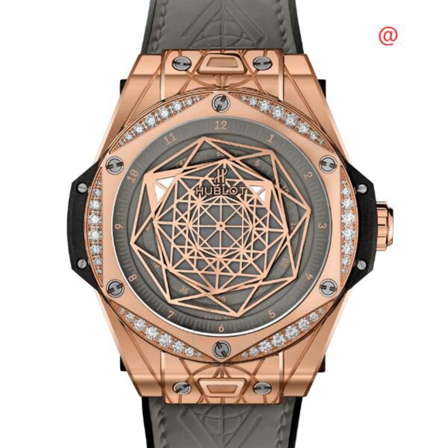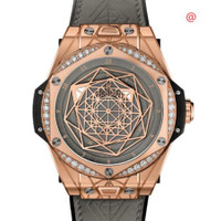 18kt rose gold case with a grey alligator band. Fixed bezel with diamond set. Grey dial with Arabic numeral hour markers. Dial Type: Analog. Hublot Calibre HUB1710 Automatic movement, based upon Zenith Elite 670, containing 27 Jewels, bitting at 28800 vph, and has a power reserve of approximately 50 hours. Scratch resistant sapphire crystal. Screw down crown. Transparent see through case back. Hexagon case shape, case size: 39 mm. Deployment clasp. Water resistant at 100 meters / 330 feet. Functions: date, hour, minute, second. Additional Info: original box, international warranty card, manual (complete accessories). Big Bang Series. Luxury watch style. Watch label: Swiss Made. Hublot Big Bang One Click Sang Bleu Automatic Diamond Grey Dial Men's Watch 465.OS.7048.VR.1204.MXM20. GENERAL Box Type: Original Box CASE Case Size: 39 Case Material: 18kt Rose Gold Case Shape: Unique Case Back: Transparent See Through BAND Band Material: Alligator Band Type: Strap Band Color: Grey Clasp: Deployment DIAL Dial Color: Grey Type: Analog Crystal: Scratch Resistant Sapphire Hands: Rose Gold-tone Dial Markers: Arabic Numeral Bezel: Fixed Bezel Material: Diamond Set Crown: Screw Down INFORMATION Brand: Hublot Series: Big Bang Collection Name: Big Bang Gender: Mens Model: 465.OS.7048.VR.1204.MXM20 Watch Label: Swiss Made Movement: Automatic Engine: Hublot Calibre HUB1710 Power Reserve: 50 hours FEATURES Water Resistance: 100 meters / 330 feet Functions: Date, Hour, Minute, Second Watch Features: Alligator Leather, Analog, Gold, Diamond ADDITIONAL INFO Watch Style: Luxury Warranty: 2 Year Jomashop Warranty Additional Info: Original Box, Manual (Complete Accessories) Jomashop Sku: HB5OS7048VR1204MXM20 Department: Watches Category: Watches