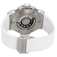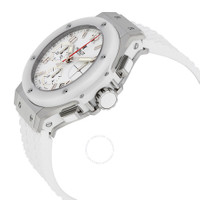 Stainless steel case with a white rubber strap. Fixed white ceramic bezel. White dial with silver-tone hands and alternating index and Arabic numeral hour markers. Arabic numeral minute markers (at 5 minute intervals). Minute markers around the outer rim. Dial Type: Analog. Luminescent hands. Date display between the 4 and 5 o'clock positions. Chronograph - three sub-dials displaying: 60 second, 30 minute and 12 hour. Hublot calibre HUB1145 automatic movement, containing 37 Jewels, bitting at 28800 vph, and has a power reserve of approximately 42 hours. Scratch resistant anti-reflective sapphire crystal. Pull / push crown. Transparent sapphire case back. Round case shape. Case size: 41 mm. Deployment clasp. Water resistant at 30 meters / 100 feet. Functions: chronograph, date, hour, minute, second. Big Bang Steel White Series. Luxury watch style. Watch label: Swiss Made. Item Variations: 342 SE 230 RW, 342-SE-230-RW, 342/SE/230/RW, 342SE230RW. Hublot Big Bang Steel White Automatic White Dial Men's Watch 342.SE.230.RW. GENERAL Box Type: Original Box CASE Case Size: 41 Case Material: Stainless Steel Case Shape: Round Case Back: Transparent Sapphire BAND Band Material: Rubber Band Type: Strap Band Color: White Clasp: Deployment DIAL Dial Color: White Type: Analog Crystal: Anti-reflective Sapphire Hands: Silver-tone Dial Markers: Alternating Index and Arabic Numeral Second Markers: Arabic Numeral Minute markers (at 5 minute intervals). Minute Markers around the outer rim Sub Dials: Three - 60 Second, 30 Minute and 12 Hour Luminiscence: Hands Bezel: Fixed Bezel Color: White Bezel Material: Ceramic Crown: Pull / Push INFORMATION Brand: Hublot Series: Big Bang Collection Name: Big Bang Steel White Gender: Mens Model: 342.SE.230.RW Watch Label: Swiss Made Movement: Automatic Engine: Hublot Calibre HUB1145 Power Reserve: 42 hours FEATURES Water Resistance: 30 meters / 100 feet Calendar: Date display between the 4 and 5 o'clock positions Functions: Chronograph, Date, Hour, Minute, Second Watch Features: Analog, Ceramic, Rubber, Stainless Steel, Chronograph ADDITIONAL INFO Watch Style: Luxury Warranty: 2 Year Jomashop Warranty Jomashop Sku: HB342SE230RW Item Variation: 342 SE 230 RW, 342-SE-230-RW, 342/SE/230/RW, 342SE230RW Department: Watches Category: Watches
