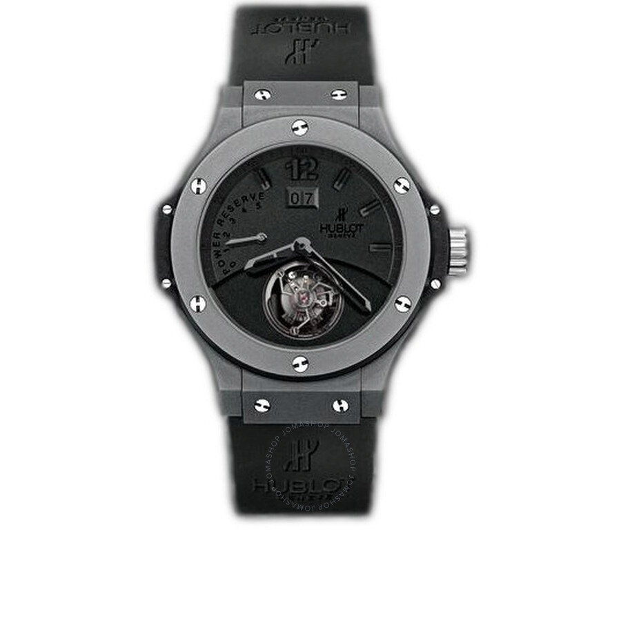 Ceramic case with a black rubber strap. Fixed bezel. Black dial with skeleton hands and index hour markers. Dial Type: Analog. Date display at the 12 o'clock position. Hublot Calibre HUB1050GD hand wind movement with about 5 Day of power reserve. Scratch resistant sapphire crystal. Case size: 44 mm. Round case shape. Water resistant at 100 meters / 330 feet. Functions: date, hour, minute, second. Luxury watch style. Watch label: Swiss Made. Item Variations: 302 CI 134 RX, 302-CI-134-RX, 302/CI/134/RX, 302CI134RX. Hublot Big Bang Tourbillon Black Dial Ceramic Men's Watch 302.CI.134.RX. GENERAL Box Type: Original Box CASE Case Size: 44 Case Material: Ceramic Case Shape: Round BAND Band Material: Rubber Band Type: Strap Band Color: Black DIAL Dial Color: Black Type: Analog Crystal: Scratch Resistant Sapphire Hands: Skeleton Dial Markers: Index Bezel: Fixed Bezel Color: Black Bezel Material: Ceramic INFORMATION Brand: Hublot Series: Big Bang Collection Name: Big Bang Tourbillon Gender: Mens Model: 302.CI.134.RX Watch Label: Swiss Made Movement: Hand Wind Engine: Hublot Calibre HUB1050GD Power Reserve: 120 hours / 5 days FEATURES Water Resistance: 100 meters / 330 feet Calendar: Date display at the 12 o'clock position Functions: Tourbillon, Big Date, Hour, Minute, Second, Power Reserve Indicator Watch Features: Analog, Power Reserve Indicator, Ceramic, Rubber, Tourbillon ADDITIONAL INFO Watch Style: Luxury Warranty: 2 Year Jomashop Warranty Jomashop Sku: HB302CI134RX Item Variation: 302 CI 134 RX, 302-CI-134-RX, 302/CI/134/RX, 302CI134RX Department: Watches Category: Watches