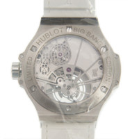 Silver-tone stainless steel case with a white alligator band. Fixed silver-tone bezel with diamond set stainless steel. White dial with silver-tone hands and Arabic numeral hour markers. Dial Type: Analog. One subdial displaying: tourbillon. Hublot Calibre HUB6004 hand wind movement with a 42-hour power reserve. Scratch resistant sapphire crystal. Screw down crown. Transparent see through case back. Round case shape, case size: 41 mm. Deployment with push button release clasp. Water resistant at 30 meters / 100 feet. Functions: tourbillon, hour, minute. Additional Info: original box, international warranty card, manual (complete accessories). Big Bang Series. Luxury watch style. Watch label: Swiss Made. Item Variations: 345 SE 2010 LR 1704, 345-SE-2010-LR-1704, 345/SE/2010/LR/1704, 345SE2010LR1704. Hublot BIG BANG Tourbillon Hand Wind Diamond White Dial Men's Watch 345.SE.2010.LR.1704. GENERAL Box Type: Original Box CASE Case Size: 41 Case Material: Stainless Steel Case Shape: Round Case Back: Transparent See Through BAND Band Material: Alligator Band Type: Strap Band Color: White Clasp: Deployment with Push Button Release DIAL Dial Color: White Type: Analog Crystal: Scratch Resistant Sapphire Hands: Silver-tone Dial Markers: Arabic Numeral Sub Dials: One - Tourbillon Bezel: Fixed Bezel Color: Silver-tone Bezel Material: Diamond Set Stainless Steel Crown: Screw Down INFORMATION Brand: Hublot Series: Big Bang Collection Name: BIG BANG Gender: Mens Model: 345.SE.2010.LR.1704 Watch Label: Swiss Made Movement: Hand Wind Engine: Hublot Calibre HUB6004 Power Reserve: 42 hours FEATURES Water Resistance: 30 meters / 100 feet Functions: Tourbillon, Hour, Minute Watch Features: Alligator Leather, Analog, Stainless Steel, Diamond, Tourbillon ADDITIONAL INFO Watch Style: Luxury Warranty: 2 Year Jomashop Warranty Additional Info: Original Box, Manual (Complete Accessories) Jomashop Sku: HB345SE2010LR1704 Item Variation: 345 SE 2010 LR 1704, 345-SE-2010-LR-1704, 345/SE/2010/LR/1704, 345SE2010LR1704 Department: Watches Category: Watches