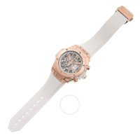 Polished 18k king gold case with a white rubber strap. Fixed polished 18k king gold bezel. Transparent dial with rose gold hands and index-Arabic numerals hour markers. Minute markers around the outer rim. Dial Type: Analog. Luminescent hands and markers. Date display at the 3 o'clock position. Chronograph - two sub-dials displaying: 60 minute and 60 second. Hublot Calibre HUB1280 automatic movement with a 72-hour power reserve. Scratch resistant sapphire crystal. Screw down crown. Transparent case back. Round case shape. Case size: 42 mm. Deployant buckle clasp. Water resistant at 100 meters / 330 feet. Functions: chronograph, column wheel, hour, minute, second. Additional Info: original box, international warranty card, manual (complete accessories). Luxury watch style. Watch label: Swiss Made. Hublot Big Bang Unico King Gold Chronograph Automatic Men's Watch 441.OE.2010.RW. GENERAL Box Type: Original Box CASE Case Size: 42 Case Material: Polished 18K King gold Case Shape: Round Case Back: Transparent BAND Band Material: Rubber Band Type: Strap Band Color: White Clasp: Deployant Buckle DIAL Dial Color: Transparent Type: Analog Crystal: Scratch Resistant Sapphire Hands: Rose Gold Dial Markers: Index-Arabic Numerals Second Markers: Minute Markers around the outer rim Sub Dials: Two - 60 Minute and 60 Second Luminiscence: Hands and Markers Bezel: Fixed Bezel Material: Polished 18K King gold Crown: Screw Down INFORMATION Brand: Hublot Series: Big Bang Collection Name: Big Bang Gender: Mens Model: 441.OE.2010.RW Watch Label: Swiss Made Movement: Automatic Engine: Hublot Calibre HUB1280 Power Reserve: 72 hours FEATURES Water Resistance: 100 meters / 330 feet Calendar: Date display at the 3 o'clock position Functions: Chronograph, Column Wheel, Hour, Minute, Second Watch Features: Analog, Gold, Rubber, Chronograph ADDITIONAL INFO Watch Style: Luxury Warranty: 2 Year Jomashop Warranty Additional Info: Original Box, Manual (Complete Accessories) Jomashop Sku: HB441OE2010RW Department: Watches Category: Watches