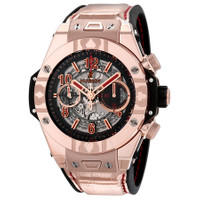 Polished and microblasted 18kt king gold case with a gold alligator leather strap. Fixed 18kt king gold bezel. Skeleton dial with rose gold hands and alternating index and Arabic numeral hour markers. Minute markers around the outer rim. Dial Type: Analog. Date display at the 3 o'clock position. Chronograph - two sub-dials displaying: 60 second and 60 minute. Automatic movement with a 72 hour power reserve. Scratch resistant sapphire crystal. Screw down crown. Transparent case back. Case diameter: 45 mm. Round case shape. Functions: chronograph, date, hour, minute, second. Luxury watch style. Watch label: Swiss Made. Item Variations: 411OX1180LRWPT15. Hublot Big Bang Unico King Gold World Poker Tour Automatic Men's Watch 411.OX.1180.LR.WPT15. GENERAL Box Type: Original Box CASE Case Size: 45 Case Material: Polished and Microblasted 18kt King Gold Case Shape: Round Case Back: Transparent BAND Band Material: Alligator Leather Band Type: Strap Band Color: Gold-tone DIAL Dial Color: Skeleton Type: Analog Crystal: Scratch Resistant Sapphire Hands: Rose Gold Dial Markers: Alternating Index and Arabic Numeral Second Markers: Minute Markers around the outer rim Sub Dials: Two - 60 Second and 60 Minute Bezel: Fixed 18K King Gold Crown: Screw Down INFORMATION Brand: Hublot Series: Big Bang Collection Name: Big Bang Unico Gender: Mens Model: 411.OX.1180.LR.WPT15 Watch Label: Swiss Made Movement: Automatic Engine: Hublot Calibre HUB1242 UNICO Power Reserve: 72 hours FEATURES Water Resistance: 100 meters / 330 feet Calendar: Date display at the 3 o'clock position Functions: Chronograph, Column Wheel, FlyBack, Date, Hour, Minute, Second Watch Features: Alligator Leather, Analog, Flyback, Gold, Leather, Chronograph ADDITIONAL INFO Watch Style: Luxury Warranty: 2 Year Jomashop Warranty UPC Code: 845960069618 Additional Info: LIMITED EDITION OF 100 PIECES Jomashop Sku: HB411OX1180LRWPT15 Item Variation: 411OX1180LRWPT15 Department: Watches Category: Watches