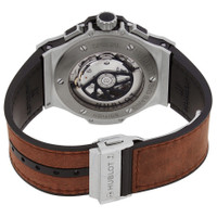 Stainless steel case with a bkack polyurethane strap with a (stiched) brown leather top. Fixed black ceramic bezel. Black dial with luminous silver-tone hands and index hour markers. Arabic numeral minute markers (at 5 minute intervals). Minute markers appear around outter rim. Dial Type: Analog. Luminescent hands and markers. Date display between the 4 and 5 o'clock positions. Chronograph - three sub-dials displaying: 60 second, 30 minute and 12 hour. Hublot calibre HUB4100 automatic movement, based upon ETA 2894-2, containing 27 Jewels, composed of 252 parts, bitting at 28800 vph, and has a power reserve of approximately 42 hours. Scratch resistant sapphire crystal. Pull / push crown. Transparent case back. Round case shape. Case size: 44 mm. Case thickness: 14.5 mm. Band width: 24 mm / 21 mm. Band length: 8 inches. Deployment (Hublot style) clasp. Water resistant at 100 meters / 330 feet. Functions: chronograph, date, hour, minute, second. Big Bang Series. Dress watch style. Watch label: Swiss Made. Hublot Big Bang Zermatt Tungsten Chronograph Automatic Men's Watch 301.SM.7070.VR.TRS18. GENERAL Box Type: Original Box CASE Case Size: 44 Case Thickness: 14.5 mm Case Material: Stainless Steel Case Shape: Round Case Back: Transparent BAND Band Material: Polyurethane with a Brown Leather Top Band Type: Strap Band Color: Bkack Band Length: 8 inches Band Width: 24 mm / 21 mm Clasp: Deployment (Hublot Style) DIAL Dial Color: Black Type: Analog Crystal: Scratch Resistant Sapphire Hands: Luminous Silver-tone Dial Markers: Index Second Markers: Arabic Numeral Minute Markers (at 5 minute intervals). Minute markers appear around outter rim Sub Dials: Three - 60 Second, 30 Minute and 12 Hour Luminiscence: Hands and Markers Bezel: Fixed Bezel Color: Black Bezel Material: Ceramic Crown: Pull / Push INFORMATION Brand: Hublot Series: Big Bang Collection Name: Big Bang Gender: Mens Model: 301.SM.7070.VR.TRS18 Watch Label: Swiss Made Movement: Automatic Engine: Hublot Calibre HUB4100 Power Reserve: 42 hours FEATURES Water Resistance: 100 meters / 330 feet Calendar: Date display between the 4 and 5 o'clock positions Functions: Chronograph, Date, Hour, Minute, Second Watch Features: Analog, Ceramic, Leather, Stainless Steel, Chronograph ADDITIONAL INFO Watch Style: Dress Warranty: 2 Year Jomashop Warranty Jomashop Sku: HB301SM7070VRTRS18 Department: Watches Category: Watches