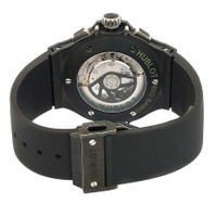 Black ceramic case with a black rubber strap. Fixed black tungsten bezel with an inlaid grey ceramic ring. Black dial with luminous silver-tone hands and index hour markers. Minute markers around the outer rim. Dial Type: Analog. Luminescent hands and markers. Date display between 4 and 5 o'clock position. Chronograph - three sub-dials displaying: 60 second, 30 minute and 12 hour. Hublot calibre HUB4100 automatic movement, based upon ETA 2894-2, containing 27 Jewels, composed of 252 parts, bitting at 28800 vph, and has a power reserve of approximately 42 hours. Scratch resistant sapphire crystal. Pull / push crown. Transparent case back. Round case shape. Case size: 44 mm. Case thickness: 15 mm. Fold over clasp with a safety release. Water resistant at 100 meters / 330 feet. Functions: chronograph, date, hour, minute, second. Big Bang Ceramic Series. Casual watch style. Watch label: Swiss Made. Item Variations: 301 CK 1140 RX, 301-CK-1140-RX, 301/CK/1140/RX, 301CK1140RX. Hublot Black Dial Rubber Automatic Men's Watch 301.CK.1140.RX. GENERAL Color: Black / Skeleton INFORMATION Brand: Hublot Series: Big Bang Ceramic Collection Name: Big Bang Ceramic Gender: Mens Model: 301.CK.1140.RX Watch Label: Swiss Made Movement: Automatic Engine: Hublot Calibre HUB4100 Power Reserve: 42 hours CASE Case Size: 44 mm Case Thickness: 15 mm Case Material: Ceramic Case Shape: Round Case Back: Transparent BAND Band Material: Rubber Band Type: Strap Band Color: Black Clasp: Fold Over with Safety Release DIAL Dial Color: Black Type: Analog Crystal: Scratch Resistant Sapphire Hands: Luminous Silver-tone Dial Markers: Index Second Markers: Minute Markers around the outer rim Sub Dials: Three - 60 Second, 30 Minute and 12 Hour Luminiscence: Hands and Markers Bezel: Fixed Bezel Color: Black Bezel Material: Tungsten with an inlaid Grey Ceramic Ring Crown: Pull / Push FEATURES Water Resistance: 100 meters / 330 feet Calendar: Date display between 4 and 5 o'clock position Functions: Chronograph, Date, Hour, Minute, Second Watch Features: Chronograph, Rubber, Ceramic, Analog ADDITIONAL INFO Watch Style: Casual Warranty: 2 Year Jomashop Warranty Jomashop Sku: HB301CK1140RX Item Variation: 301 CK 1140 RX, 301-CK-1140-RX, 301/CK/1140/RX, 301CK1140RX Department: Watches Category: Watches
