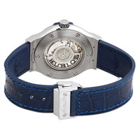 Grey polished titanium case with a blue (alligator) rubber strap. Fixed grey titanium bezel. Blue sunray dial with silver-tone hands and index hour markers. Dial Type: Analog. Date display at the 3 o'clock position. Hublot calibre HUB1110 automatic movement, based upon Sellita SW300-1, containing 21 Jewels, bitting at 28800 vph, and has a power reserve of approximately 42 hours. Scratch resistant sapphire crystal. Pull / push crown. Transparent case back. Round case shape. Case size: 38 mm. Deployment clasp with a push button release. Water resistant at 50 meters / 165 feet. Functions: date, hour, minute, second. Luxury watch style. Watch label: Swiss Made. Hublot Classic Fusion Blue Sunray Dial Titanium 38mm Automatic Men's Watch 565.NX.7170.LR. INFORMATION Brand: Hublot Series: Classic Fusion Collection Name: Classic Fusion Gender: Mens Model: 565.NX.7170.LR Watch Label: Swiss Made Movement: Automatic Engine: Hublot Calibre HUB1110 Power Reserve: 42 hours CASE Case Size: 38 mm Case Material: Polished Titanium Case Shape: Round Case Back: Transparent BAND Band Material: (Alligator) Rubber Band Type: Strap Band Color: Blue Clasp: Deployment with Push Button Release DIAL Dial Color: Blue Sunray Type: Analog Crystal: Scratch Resistant Sapphire Hands: Silver-tone Dial Markers: Index Bezel: Fixed Bezel Color: Grey Bezel Material: Titanium Crown: Pull / Push FEATURES Water Resistance: 50 meters / 165 feet Calendar: Date display at the 3 o'clock position Functions: Date, Hour, Minute, Second Watch Features: Titanium, Rubber, Analog, Alligator Leather ADDITIONAL INFO Watch Style: Luxury Warranty: 2 Year Jomashop Warranty UPC Code: 700533055668 Jomashop Sku: HB565NX7170LR Department: Watches Category: Watches