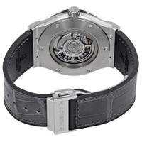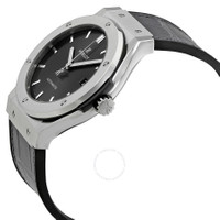 Grey titanium case with a grey rubber strap with a stiched grey (alligator) leather top. Fixed grey titanium bezel. Grey sunray dial with silver-tone hands and index hour markers. Dial Type: Analog. Date display at the 3 o'clock position. Hublot calibre HUB1112 automatic movement, based upon Sellita SW300-1, containing 25 Jewels, composed of 63 parts, bitting at 28800 vph, and has a power reserve of approximately 42 hours. Scratch resistant sapphire crystal. Pull / push crown. Transparent case back. Round case shape. Case size: 45 mm. Deployment clasp with a push button release. Water resistant at 50 meters / 165 feet. Functions: date, hour, minute, second. Classic Fusion Series. Luxury watch style. Watch label: Swiss Made. Hublot Classic Fusion Automatic Men's Watch 511.NX.7071.LR. INFORMATION Brand: Hublot Series: Classic Fusion Collection Name: Classic Fusion Gender: Mens Model: 511.NX.7071.LR Watch Label: Swiss Made Movement: Automatic Engine: Hublot Calibre HUB1112 Power Reserve: 42 hours CASE Case Size: 45 mm Case Material: Titanium Case Shape: Round Case Back: Transparent BAND Band Material: Rubber with a Grey (Alligator) Leather Top Band Type: Strap Band Color: Grey Clasp: Deployment with Push Button Release DIAL Dial Color: Grey Sunray Type: Analog Crystal: Scratch Resistant Sapphire Hands: Silver-tone Dial Markers: Index Bezel: Fixed Bezel Color: Grey Bezel Material: Titanium Crown: Pull / Push FEATURES Water Resistance: 50 meters / 165 feet Calendar: Date display at the 3 o'clock position Functions: Date, Hour, Minute, Second Watch Features: Titanium, Rubber, Leather, Analog, Alligator Leather ADDITIONAL INFO Watch Style: Luxury Warranty: 2 Year Jomashop Warranty Jomashop Sku: HB511NX7071LR Department: Watches Category: Watches