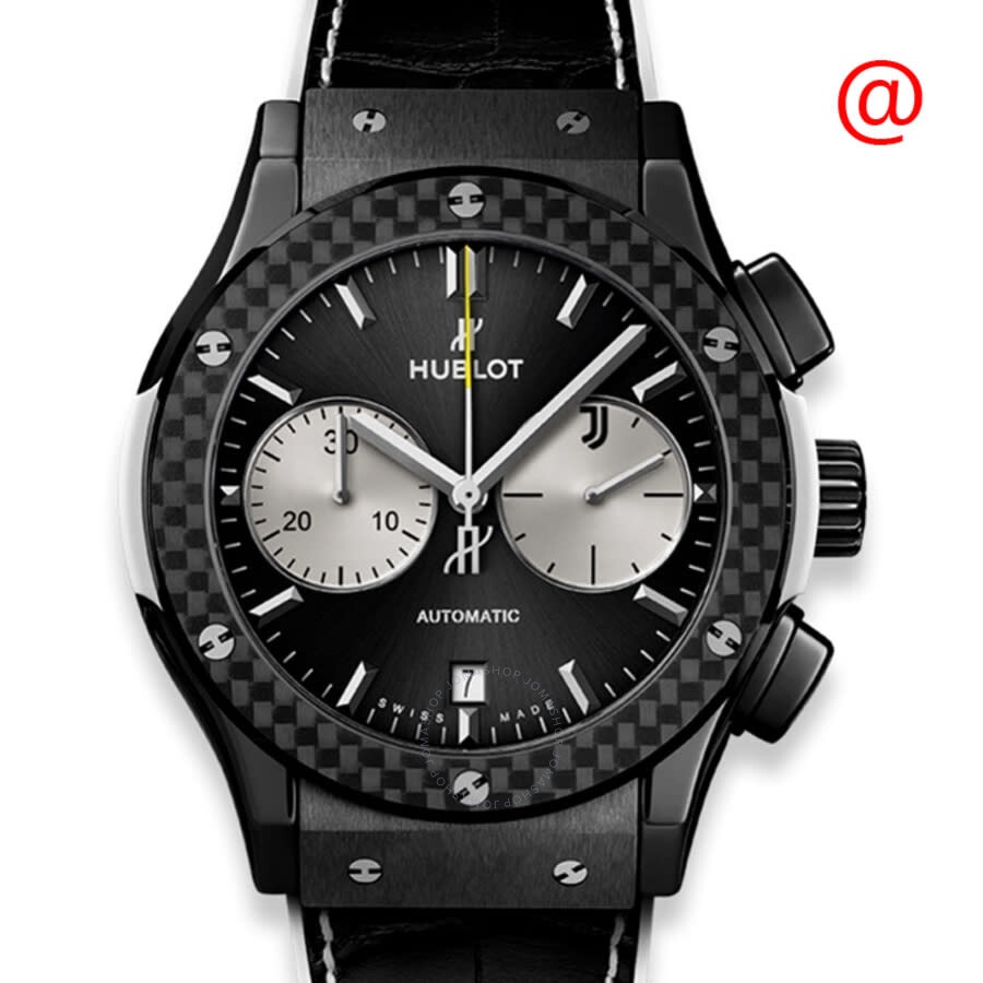 Black titanium case with a black leather strap. Fixed black titanium bezel. Two-tone dial with silver-tone hands and index hour markers. Minute markers around the outer rim. Dial Type: Analog. Date display at the 6 o'clock position. Chronograph - two sub-dials displaying: 60 second and 30 minute. Hublot Calibre HUB1143 Automatic movement, based upon ETA 2892-A2, containing 59 Jewels, bitting at 28800 vph, and has a power reserve of approximately 42 hours. Scratch resistant sapphire crystal. Round case shape, case size: 45 mm. Water resistant at 50 meters / 165 feet. Functions: chronograph, date, hour, minute, second. Additional Info: original box, manual (complete accessories). Classic Fusion Series. Luxury watch style. Watch label: Swiss Made. Hublot Classic Fusion Chronograph Automatic Men's Watch 521.CQ.1420.LR.JUV18. GENERAL Box Type: Original Box CASE Case Size: 45 Case Material: Titanium Case Shape: Round BAND Band Material: Leather Band Type: Strap Band Color: Black DIAL Dial Color: Two-tone Type: Analog Crystal: Scratch Resistant Sapphire Hands: Silver-tone Dial Markers: Index Second Markers: Minute Markers around the outer rim Sub Dials: Two - 60 Second and 30 Minute Bezel: Fixed Bezel Color: Black Bezel Material: Titanium INFORMATION Brand: Hublot Series: Classic Fusion Collection Name: Classic Fusion Gender: Mens Model: 521.CQ.1420.LR.JUV18 Watch Label: Swiss Made Movement: Automatic Engine: Hublot Calibre HUB1143 Power Reserve: 42 hours FEATURES Water Resistance: 50 meters / 165 feet Calendar: Date display at the 6 o'clock position Functions: Chronograph, Date, Hour, Minute, Second Watch Features: Analog, Leather, Titanium, Chronograph ADDITIONAL INFO Watch Style: Luxury Warranty: 2 Year Jomashop Warranty Additional Info: Original Box, Manual (Complete Accessories) Jomashop Sku: HB521CQ1420LRJUV18 Department: Watches Category: Watches