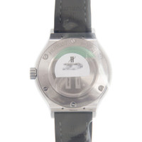 Grey titanium case with a grey rubber strap with a (stiched) grey (alligator) leather top. Fixed grey titanium bezel. Grey dial with silver-tone hands and index hour markers. Dial Type: Analog. Date display at the 3 o'clock position. Hublot calibre HUB2912 quartz movement. Scratch resistant sapphire crystal. Screw down crown. Solid case back. Round case shape. Case size: 33 mm. Fold over clasp. Water resistant at 50 meters / 165 feet. Functions: date, hour, minute, second. Classic Fusion Series. Sport watch style. Watch label: Swiss Made. Hublot Classic Fusion Quartz Titanium 33mm Watch 581.NX.7071.LR. INFORMATION Brand: Hublot Series: Classic Fusion Collection Name: Classic Fusion Gender: Womens Model: 581.NX.7071.LR Watch Label: Swiss Made Movement: Quartz Engine: Hublot Calibre HUB2912 CASE Case Size: 33 mm Case Material: Titanium Case Shape: Round Case Back: Solid BAND Band Material: Rubber with a Grey (Alligator) Leather Top Band Type: Strap Band Color: Grey Clasp: Fold Over DIAL Dial Color: Grey Type: Analog Crystal: Scratch Resistant Sapphire Hands: Silver-tone Dial Markers: Index Bezel: Fixed Bezel Color: Grey Bezel Material: Titanium Crown: Screw Down FEATURES Water Resistance: 50 meters / 165 feet Calendar: Date display at the 3 o'clock position Functions: Date, Hour, Minute, Second Watch Features: Titanium, Rubber, Leather, Analog, Alligator Leather ADDITIONAL INFO Watch Style: Sport Warranty: 2 Year Jomashop Warranty Jomashop Sku: HB581NX7071LR Department: Watches Category: Watches