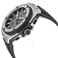 Titanium case with a black rubber strap. Fixed titanium bezel. Skeletonized dial with luminous hands and index hour markers. Minute markers around the outer rim. Dial Type: Analog. Date display between the 4 and 5 o'clock positions. Chronograph - two sub-dials displaying: 60 second and 60 minute. Hublot calibre HUB1240 automatic movement with a 72-hour power reserve. Scratch resistant sapphire crystal. Screw down crown. Screw down case back. Round case shape. Case size: 48 mm. Case thickness: 17.60 mm. Band width: 20.3 mm. Band length: 8 inches. Deployment clasp. Water resistant at 100 meters / 330 feet. Functions: chronograph, date, hour, minute, second. Luxury watch style. Watch label: Swiss Made. Item Variations: 701 NX 0170 RX, 701-NX-0170-RX, 701/NX/0170/RX, 701NX0170RX. Hublot King Power Unico Skeleton Dial Titanium Men's Watch 701.NX.0170.RX. GENERAL Box Type: Original Box Color: Black / Skeleton / Tan CASE Case Size: 48 Case Thickness: 17.6 mm Case Material: Titanium Case Shape: Round Case Back: Screw Down BAND Band Material: Rubber Band Type: Strap Band Color: Black Band Length: 8 inches Band Width: 20.3 mm Clasp: Deployment DIAL Dial Color: Skeletonized Type: Analog Crystal: Scratch Resistant Sapphire Hands: Luminous Dial Markers: Index Second Markers: Minute Markers around the outer rim Sub Dials: Two - 60 Second and 60 Minute Bezel: Fixed Bezel Color: Grey Bezel Material: Titanium Crown: Screw Down INFORMATION Brand: Hublot Series: Big Bang Collection Name: King Power Unico Gender: Mens Model: 701.NX.0170.RX Watch Label: Swiss Made Movement: Automatic Engine: Hublot Calibre HUB1240 Power Reserve: 72 hours FEATURES Water Resistance: 100 meters / 330 feet Calendar: Date display between the 4 and 5 o'clock positions Functions: Chronograph, Date, Hour, Minute, Second Watch Features: Analog, Rubber, Titanium, Chronograph ADDITIONAL INFO Watch Style: Luxury Warranty: 2 Year Jomashop Warranty UPC Code: 845960050982 Jomashop Sku: HB701NX0170RX Item Variation: 701 NX 0170 RX, 701-NX-0170-RX, 701/NX/0170/RX, 701NX0170RX Department: Watches Category: Watches