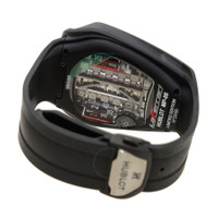 Black microblasted titanium case with a black smooth rubber strap. Fixed black titanium bezel. Skeleton dial. Dial Type: digital. Luminescent markers. Hublot Caliber HUB9005.H1.6 Hand Wind movement, containing 108 Jewels, composed of 637 parts, bitting at 21600 vph, and has a power reserve of approximately 1200 hours. Scratch resistant sapphire crystal. Pull / push crown. Skeleton transparent case back. Unique case shape, case size: 46 mm. Band length: 8.5 inches. Tang clasp. Water resistant at 30 meters / 100 feet. Functions: tourbillon, power reserve indicator, hour, minute, second. Additional Info: limited edition of 50 pieces. all functions are displayed by spinning cylinders. Mp-05 Laferrari Series. Sport watch style. Watch label: Swiss Made. Item Variations: 905 NX 0001 RX, 905-NX-0001-RX, 905/NX/0001/RX, 905NX0001RX. Hublot Mp 05 Laferrari 50 Days Power Reserve Men's Watch 905.NX.0001.RX. GENERAL Box Type: Original Box CASE Case Size: 46 Case Material: Microblasted Titanium Case Shape: Unique Case Back: Skeleton Transparent BAND Band Material: Smooth Rubber Band Type: Strap Band Color: Black Band Length: 8.5 inches Clasp: Tang DIAL Dial Color: Skeleton Type: Digital Crystal: Scratch Resistant Sapphire Luminiscence: Markers Bezel: Fixed Bezel Color: Black Bezel Material: Titanium Crown: Pull / Push INFORMATION Brand: Hublot Series: Mp Collection Name: MP-05 LaFerrari Gender: Mens Model: 905.NX.0001.RX Watch Label: Swiss Made Movement: Hand Wind Engine: Hublot Caliber HUB9005.H1.6 Power Reserve: 50 days / 1200 hours FEATURES Water Resistance: 30 meters / 100 feet Functions: Tourbillon, Power Reserve Indicator, Hour, Minute, Second Watch Features: Digital, Power Reserve Indicator, Rubber, Titanium, Tourbillon ADDITIONAL INFO Watch Style: Luxury Warranty: 2 Year Jomashop Warranty Additional Info: Limited edition of 50 pieces. All functions are displayed by spinning cylinders Jomashop Sku: HB905NX0001RX Item Variation: 905 NX 0001 RX, 905-NX-0001-RX, 905/NX/0001/RX, 905NX0001RX Department: Watches Category: Watches