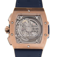 18kt king gold case with a blue rubber strap with a stiched blue (alligator) leather top. Fixed 18kt king gold bezel. Blue (skeleton center) dial with luminous king gold-tone hands and index hour markers. Minute markers around the outer rim. Dial Type: Analog. Luminescent hands and markers. Date display between the 4 and 5 o'clock positions. Chronograph - three sub-dials displaying: 60 second, 30 minute and 1/10th of a second. Hublot calibre HUB4700 automatic movement, containing 31 Jewels, composed of 278 parts, bitting at 36000 vph, and has a power reserve of approximately 50 hours. Scratch resistant sapphire crystal. Pull / push crown. Transparent case back. Tonneau case shape. Case dimensions: 51 mm x 45 mm. Fold over clasp with a push button release. Water resistant at 100 meters / 330 feet. Functions: chronograph, date, hour, minute, second. Spirit Of Big Bang Series. Luxury watch style. Watch label: Swiss Made. Hublot Spirit Of Big Bang 18kt King Gold Chronograph Automatic Men's Watch 601.OX.7180.LR. GENERAL Box Type: Original Box CASE Case Size: 45 Case Material: 18kt King Gold Case Shape: Tonneau Case Back: Transparent BAND Band Material: Rubber with a Blue (Alligator) Leather Top Band Type: Strap Band Color: Blue Clasp: Fold Over with Push Button Release DIAL Dial Color: Blue (Skeleton Center) Type: Analog Crystal: Scratch Resistant Sapphire Hands: Luminous King Gold-tone Dial Markers: Index Second Markers: Minute Markers around the outer rim Sub Dials: Three - 60 Second, 30 Minute and 1/10th of a Second Luminiscence: Hands and Markers Bezel: Fixed Bezel Material: 18kt King Gold Crown: Pull / Push INFORMATION Brand: Hublot Series: Spirit Of Big Bang Collection Name: Spirit Of Big Bang Gender: Mens Model: 601.OX.7180.LR Watch Label: Swiss Made Movement: Automatic Engine: Hublot Calibre HUB4700 Power Reserve: 50 hours FEATURES Water Resistance: 100 meters / 330 feet Calendar: Date display between the 4 and 5 o'clock positions Functions: Chronograph, Date, Hour, Minute, Second Watch Features: Alligator Leather, Analog, Gold, Leather, Rubber, Chronograph ADDITIONAL INFO Watch Style: Luxury Warranty: 2 Year Jomashop Warranty UPC Code: 842047187746 Jomashop Sku: HB601OX7180LR Department: Watches Category: Watches