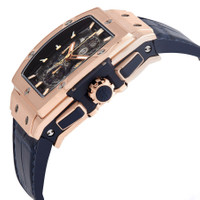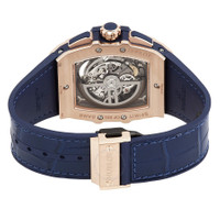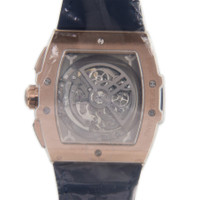 18kt king gold case with a blue (alligator) leather strap. Fixed 18kt king gold bezel. Silver skeleton dial with luminous rose gold-tone hands and index hour markers. Minute markers around the outer rim. Dial Type: Analog. Luminescent hands and markers. Date display between the 4 and 5 o'clock positions. Chronograph - three sub-dials displaying: 60 second, 30 minute and 12 hour. Hublot Calibre HUB4700 Automatic movement, containing 31 Jewels, composed of 278 parts, bitting at 36000 vph, and has a power reserve of approximately 50 hours. Scratch resistant sapphire crystal. Pull / push crown. Transparent case back. Tonneau case shape, case size: 51 mm x 42 mm. Deployment clasp. Water resistant at 100 meters / 330 feet. Functions: chronograph, date, hour, minute, second. Spirit Of Big Bang Series. Luxury watch style. Watch label: Swiss Made. Hublot Spirit of Big Bang 18kt King Gold Chronograph Automatic Men's Watch 641.OX.7180.LR. INFORMATION Brand: Hublot Series: Spirit Of Big Bang Collection Name: Spirit of Big Bang Gender: Mens Model: 641.OX.7180.LR Watch Label: Swiss Made Movement: Automatic Engine: Hublot Calibre HUB4700 Power Reserve: 50 hours CASE Case Size: 51 mm x 42 mm Case Material: 18kt King Gold Case Shape: Tonneau Case Back: Transparent BAND Band Material: (Alligator) Leather Band Type: Strap Band Color: Blue Clasp: Deployment DIAL Dial Color: Silver Skeleton Type: Analog Crystal: Scratch Resistant Sapphire Hands: Luminous Rose Gold-tone Dial Markers: Index Second Markers: Minute Markers around the outer rim Sub Dials: Three - 60 Second, 30 Minute and 12 Hour Luminiscence: Hands and Markers Bezel: Fixed Bezel Material: 18kt King Gold Crown: Pull / Push FEATURES Water Resistance: 100 meters / 330 feet Calendar: Date display between the 4 and 5 o'clock positions Functions: Chronograph, Date, Hour, Minute, Second Watch Features: Chronograph, Leather, Gold, Analog, Alligator Leather ADDITIONAL INFO Watch Style: Luxury Warranty: 2 Year Jomashop Warranty UPC Code: 842047187753 Jomashop Sku: HB641OX7180LR Department: Watches Category: Watches