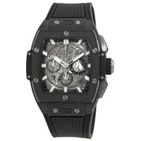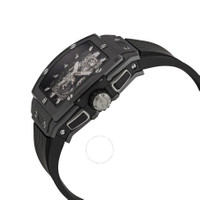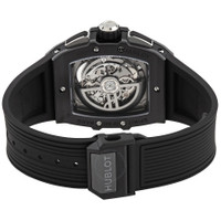 Ceramic case with a black rubber strap. Fixed microblasted black ceramic bezel. Skeleton dial with index hour markers. Dial Type: Analog. Date display between 4 and 5 o'clock position. Chronograph - three sub-dials displaying: 60 second, 30 minute and 12 hour. Hublot Calibre HUB4700 Automatic movement, containing 31 Jewels, composed of 278 parts, bitting at 36000 vph, and has a power reserve of approximately 50 hours. Scratch resistant sapphire crystal. Transparent see through case back. Tonneau case shape, case size: 42 mm. Tang clasp. Water resistant at 100 meters / 330 feet. Functions: chronograph, date, hour, minute, second. Spirit Of Big Bang Series. Luxury watch style. Watch label: Swiss Made. Hublot Sspirit of Big Bang Black Magic Chronograph Automatic Men's Watch 642.CI.0170.RX. GENERAL Box Type: Original Box CASE Case Size: 42 Case Material: Ceramic Case Shape: Tonneau Case Back: Transparent See Through BAND Band Material: Rubber Band Type: Strap Band Color: Black Clasp: Tang DIAL Dial Color: Skeleton Type: Analog Crystal: Scratch Resistant Sapphire Dial Markers: Index Sub Dials: Three - 60 Second, 30 Minute and 12 Hour Bezel: Fixed Bezel Material: Microblasted Black Ceramic INFORMATION Brand: Hublot Series: Spirit Of Big Bang Collection Name: Spirit of Big Bang Gender: Mens Model: 642.CI.0170.RX Watch Label: Swiss Made Movement: Automatic Engine: Hublot Calibre HUB4700 Power Reserve: 50 hours FEATURES Water Resistance: 100 meters / 330 feet Calendar: Date display between 4 and 5 o'clock position Functions: Chronograph, Date, Hour, Minute, Second Watch Features: Analog, Ceramic, Rubber, Chronograph ADDITIONAL INFO Watch Style: Luxury Warranty: 2 Year Jomashop Warranty Jomashop Sku: HB642CI0170RX Department: Watches Category: Watches