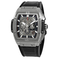 Grey satin-finished titanium case with a black rubber strap with a stiched black (alligator) leather top. Fixed grey titanium bezel. Lateral case center band and bezel lugs of black composite resin. Skeleton dial with silver-tone hands and index hour markers. Minute markers around the outer rim. Dial Type: Analog. Luminescent hands and markers. Date display between the 4 and 5 o'clock positions. Chronograph - three sub-dials displaying: 60 second, 30 minute and 12 hour. Hublot calibre HUB4700 automatic movement, containing 31 Jewels, composed of 278 parts, bitting at 36000 vph, and has a power reserve of approximately 50 hours. Scratch resistant sapphire crystal. Pull / push crown. Transparent case back. Tonneau case shape. Case dimensions: 51 mm x 45 mm. Deployment clasp with a push button release. Water resistant at 100 meters / 330 feet. Functions: chronograph, date, hour, minute, second. Spirit Of Big Bang Series. Luxury watch style. Watch label: Swiss Made. Item Variations: 601 NX 0173 LR, 601-NX-0173-LR, 601/NX/0173/LR, 601NX0173LR. Hublot Spirit of Big Bang Titanium Automatic Men's Watch 601.NX.0173.LR. INFORMATION Brand: Hublot Series: Spirit Of Big Bang Collection Name: Spirit of Big Bang Gender: Mens Model: 601.NX.0173.LR Watch Label: Swiss Made Movement: Automatic Engine: Hublot Calibre HUB4700 Power Reserve: 50 hours CASE Case Size: 51 mm X 45 mm Case Material: Satin-finished Titanium Case Shape: Tonneau Case Back: Transparent BAND Band Material: Rubber with a Black (Alligator) Leather Top Band Type: Strap Band Color: Black Clasp: Deployment with Push Button Release DIAL Dial Color: Skeleton Type: Analog Crystal: Scratch Resistant Sapphire Hands: Silver-tone Dial Markers: Index Second Markers: Minute Markers around the outer rim Sub Dials: Three - 60 Second, 30 Minute and 12 Hour Luminiscence: Hands and Markers Bezel: Fixed Bezel Color: Grey Bezel Material: Titanium Crown: Pull / Push FEATURES Water Resistance: 100 meters / 330 feet Calendar: Date display between the 4 and 5 o'clock positions Functions: Chronograph, Date, Hour, Minute, Second Watch Features: Alligator Leather, Analog, Leather, Rubber, Titanium, Chronograph ADDITIONAL INFO Watch Style: Luxury Warranty: 2 Year Jomashop Warranty Jomashop Sku: HB601NX0173LR Item Variation: 601 NX 0173 LR, 601-NX-0173-LR, 601/NX/0173/LR, 601NX0173LR Department: Watches Category: Watches