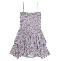 Isabel Marant Etoile Ladies Dresses. Fashion category: Casual Dresses. SKU: 24ARO0246FA-B3J02E-ECRU/LILAC. Color: Ecru/Lilac. Isabel Marant Anka Smocked Dress. The Anka smocked dress is crafted from printed cotton voile and adorned with delicate pointed frills. It features a smocked, fitted bustier, thin removable straps with hidden buttons, and a short, flared skirt with asymmetrical pointed frills for a playful, feminine touch. 100% cotton. GENERAL Color: Ecru/Lilac INFORMATION Brand: Isabel Marant Etoile Gender: Womens Model: 24ARO0246FA-B3J02E-ECRU/LILAC DETAILS Category: Dresses Apparel Type: Casual Dresses Material: Cotton ADDITIONAL INFO Jomashop Sku: -46FAB3J02EECRULILAC Department: Clothing