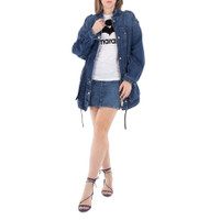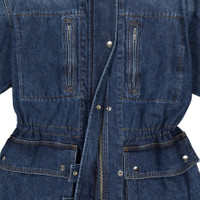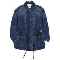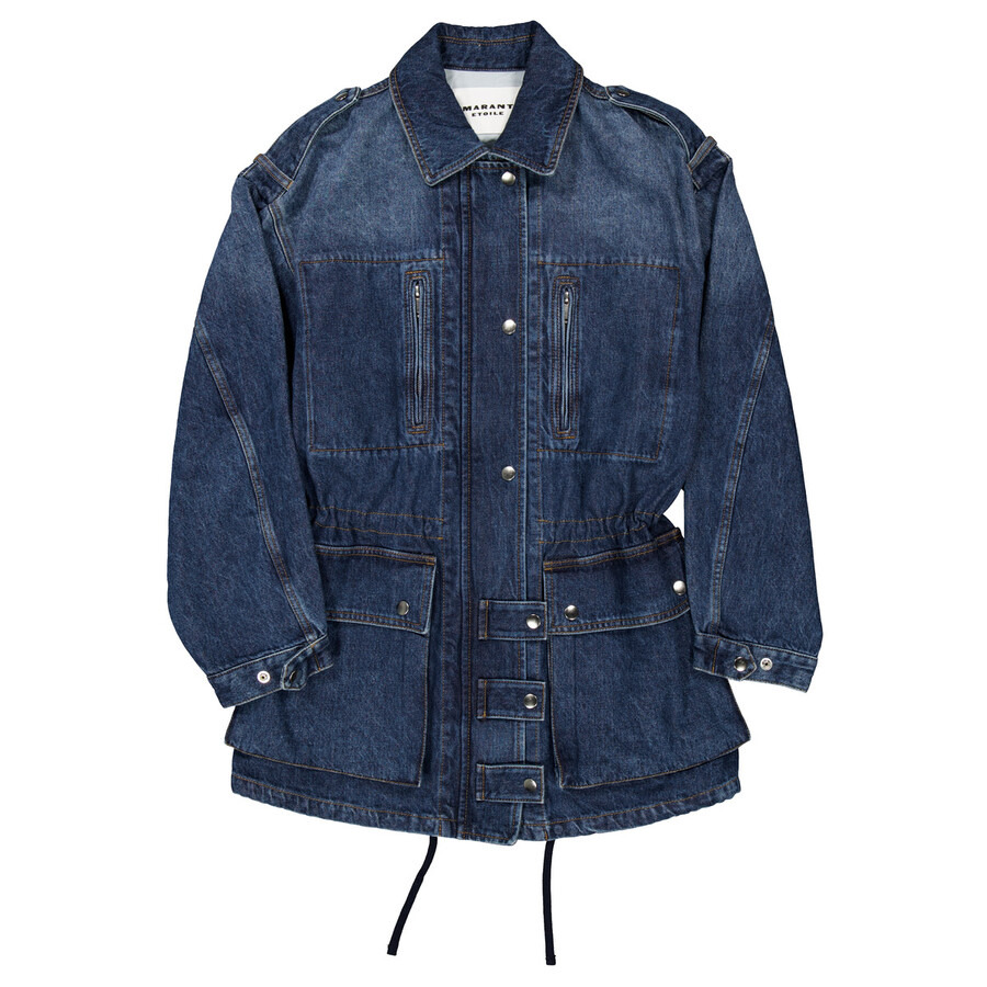 Isabel Marant Etoile Ladies Outerwear. Fashion category: Coats & Jackets. SKU: 24AVE0358FA-B3H02E-BLUE. Color: Blue. Isabel Marant Joanna Workwear Style Jacket. A workwear-inspired jacket crafted from plain-colored denim, featuring a shirt collar, shoulder tabs, long sleeves with snap-fastened cuffs, zippered front pockets, and gusseted pockets with snap-fastened flaps. It has an adjustable drawstring waist, secured with a zipper, snap buttons, and snap-buttoned tabs. The jacket is finished with silver-tone metal details, is unlined, and has a straight cut. 100% cotton. GENERAL Color: Blue INFORMATION Brand: Isabel Marant Etoile Gender: Womens Model: 24AVE0358FA-B3H02E-BLUE DETAILS Category: Outerwear Apparel Type: Coats & Jackets Material: Cotton ADDITIONAL INFO Jomashop Sku: -AVE0358FAB3H02EBLUE Department: Clothing