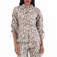 Brand: Isabel Marant. SKU: PHT0605FAC1C01I 23NL. Color: Grey. Isabel Marant Florida Long-Sleeve Shirt. Florida shirt showcasing a classic pointed collar, long sleeves with dropped shoulders, and a bold snake print pattern. Designed with a front button closure and two patch pockets, blending chic style with casual versatility. 55% linen, 45% viscose. GENERAL Color: Grey INFORMATION Brand: Isabel Marant Gender: Womens Model: PHT0605FAC1C01I 23NL DETAILS Category: Tops Apparel Type: Casual Button-Downs Material: Linen, Viscose ADDITIONAL INFO Jomashop Sku: -PHT0605FAC1C01I23NL Department: Clothing