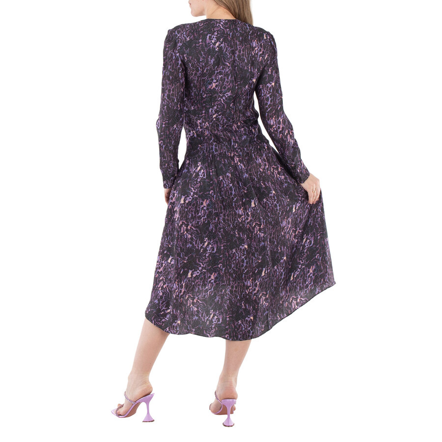 Isabel Marant Ladies Dresses. Fashion category: Casual Dresses. SKU: 24ARO0574FA-B3J05I-DARKPLUM. Color: Darkplum. Isabel Marant Magaly Silk Blend Midi Dress. This silk blend dress features a low-cut V-neckline, long sleeves with cuffs, and gathers creating a draped effect at the front. It is fastened with a visible silver-finish metal zipper at the front, has an asymmetrical hem, crepe lining, and a flared cut with a fitted waist. 65% viscose, 35% silk. GENERAL Color: Darkplum INFORMATION Brand: Isabel Marant Gender: Womens Model: 24ARO0574FA-B3J05I-DARKPLUM DETAILS Category: Dresses Apparel Type: Casual Dresses Material: Silk, Viscose ADDITIONAL INFO Jomashop Sku: -574FAB3J05IDARKPLUM Department: Clothing