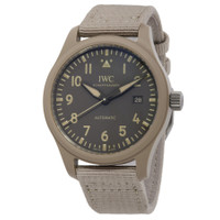 Biege ceramic case with a grey rubber strap. Fixed biege ceramic bezel. Grey dial with black hands and Arabic numeral hour markers. Minute markers around the outer rim. Dial Type: Analog. Luminescent hands and markers. Date display at the 3 o'clock position. IWC Calibre 32112 automatic movement with a 120-hour power reserve. Scratch resistant sapphire crystal. Screw down crown. Solid case back. Round case shape, case size: 41 mm. Buckle clasp. Water resistant at 100 meters / 330 feet. Functions: date, hour, minute, second. Additional Info: top gun mojave desert. Pilots Series. Luxury watch style. Watch label: Swiss Made. IWC Pilots Automatic Grey Dial Men's Watch IW328106. GENERAL Box Type: Original Box CASE Case Diameter: 41 mm Case Material: Ceramic Case Shape: Round Case Back: Solid BAND Band Material: Rubber Band Type: Strap Band Color: Grey Clasp: Buckle DIAL Dial Color: Grey Type: Analog Crystal: Scratch Resistant Sapphire Hands: Black Dial Markers: Arabic Numeral Second Markers: Minute Markers around the outer rim Luminiscence: Hands and Markers Bezel: Fixed Bezel Color: Biege Bezel Material: Ceramic Crown: Screw Down INFORMATION Brand: IWC Series: Pilot Collection Name: Pilots Gender: Mens Model: IW328106 Watch Label: Swiss Made Movement: Automatic Engine: IWC Calibre 32112 Power Reserve: 120 hours FEATURES Water Resistance: 100 meters / 330 feet Calendar: Date display at the 3 o'clock position Functions: Date, Hour, Minute, Second Watch Features: Analog, Ceramic, Rubber ADDITIONAL INFO Watch Style: Luxury Warranty: 2 Year Jomashop Warranty Additional Info: TOP GUN Mojave Desert Jomashop Sku: IWC328106 Department: Watches