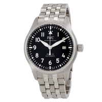 Silver-tone stainless steel case and bracelet. Fixed silver-tone stainless steel bezel. Black dial with silver-tone hands and Arabic numeral hour markers. Minute markers around the outer rim. Dial Type: Analog. Luminescent hands and markers. Date display at the 3 o'clock position. IWC Calibre 32111 automatic movement with a 120-hour power reserve. Scratch resistant sapphire crystal. Screw down crown. Solid case back. Round case shape, case size: 40 mm. Fold over clasp with a safety release. Water resistant at 100 meters / 330 feet. Functions: date, hour, minute, second. Additional Info: original box, international warranty card, manual (complete accessories). Pilots Series. Luxury watch style. Watch label: Swiss Made. IWC Pilots Automatic Black Dial Men's Watch IW328202. INFORMATION Brand: IWC Series: Pilots Collection Name: Pilots Gender: Mens Model: IW328202 Watch Label: Swiss Made Movement: Automatic Engine: IWC Calibre 32111 Power Reserve: 120 hours CASE Case Size: 40 mm Case Material: Stainless Steel Case Shape: Round Case Back: Solid BAND Band Material: Stainless Steel Band Type: Bracelet Band Color: Silver-tone Clasp: Fold Over with Safety Release DIAL Dial Color: Black Type: Analog Crystal: Scratch Resistant Sapphire Hands: Silver-tone Dial Markers: Arabic Numeral Second Markers: Minute Markers around the outer rim Luminiscence: Hands and Markers Bezel: Fixed Bezel Color: Silver-tone Bezel Material: Stainless Steel Crown: Screw Down FEATURES Water Resistance: 100 meters / 330 feet Calendar: Date display at the 3 o'clock position Functions: Date, Hour, Minute, Second Watch Features: Stainless Steel, Analog ADDITIONAL INFO Watch Style: Luxury Warranty: 2 Year Jomashop Warranty Additional Info: Original Box, International Warranty Card, Manual (Complete Accessories) Jomashop Sku: IWC328202 Department: Watches Category: Watches