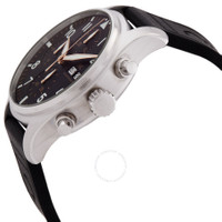 Silver-tone stainless steel case with a black rubber strap. Fixed silver-tone stainless steel bezel. Black dial with rose gold-tone hands and Arabic numeral hour markers. Minute markers around the outer rim. Dial Type: Analog. Luminescent hands and markers. Day of the week and date display at the 3 o'clock position. Chronograph - three sub-dials displaying: 60 second, 30 minute and 12 hour. IWC Calibre 69385 Automatic movement, containing 33 Jewels, composed of 231 parts, bitting at 28800 vph, and has a power reserve of approximately 46 hours. Scratch resistant sapphire crystal. Screw down crown. Transparent see through case back. Round case shape, case size: 41 mm, case thickness: 14.5 mm. Band width: 20 mm. Water resistant at 100 meters / 330 feet. Functions: chronograph, column wheel, date, day, hour, minute, small second. Pilots Series. Luxury watch style. Watch label: Swiss Made. IWC Pilots Chronograph Automatic Black Dial Watch IW388116. GENERAL Box Type: Original Box CASE Case Thickness: 14.5 mm Case Material: Stainless Steel Case Shape: Round Case Back: Transparent See Through BAND Band Material: Rubber Band Type: Strap Band Color: Black Band Width: 20 mm DIAL Dial Color: Black Type: Analog Crystal: Scratch Resistant Sapphire Hands: Rose Gold-tone Dial Markers: Arabic Numeral Second Markers: Minute Markers around the outer rim Sub Dials: Three - 60 Second, 30 Minute and 12 Hour Luminiscence: Hands and Markers Bezel: Fixed Bezel Color: Silver-tone Bezel Material: Stainless Steel Crown: Screw Down INFORMATION Brand: IWC Series: Pilot Collection Name: Pilots Gender: Mens Model: IW388116 Watch Label: Swiss Made Movement: Automatic Engine: IWC Calibre 69385 Power Reserve: 46 hours FEATURES Water Resistance: 100 meters / 330 feet Calendar: Day of the Week and Date display at the 3 o'clock position Functions: Chronograph, Column Wheel, Date, Day, Hour, Minute, Small Second Watch Features: Analog, Gold, Rubber, Stainless Steel, Chronograph ADDITIONAL INFO Watch Style: Luxury Warranty: 2 Year Jomashop Warranty Jomashop Sku: IWC388116 Department: Watches