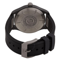 Black ceramic case with a black rubber strap. Fixed black stainless steel bezel. Black dial with black hands and Arabic numeral hour markers. Minute markers around the outer rim. Dial Type: Analog. Luminescent hands and markers. Date display at the 3 o'clock position. IWC Calibre 32110 Automatic movement, based upon ETA 2892-A2, containing 21 Jewels, bitting at 28800 vph, and has a power reserve of approximately 72 hours. Scratch resistant sapphire crystal. Screw down crown. Solid case back. Round case shape, case size: 41 mm, case thickness: 11.4 mm. Band width: 20 mm. Water resistant at 60 meters / 195 feet. Functions: date, hour, minute, second. Pilot's Top Gun Series. Luxury watch style. Watch label: Swiss Made. IWC Pilots Top Gun Automatic Black Dial Men's Watch IW326906. INFORMATION Brand: IWC Series: Pilot'S Top Gun Collection Name: Pilot's Top Gun Gender: Mens Model: IW326906 Watch Label: Swiss Made Movement: Automatic Engine: IWC Calibre 32110 Power Reserve: 72 hours CASE Case Size: 41 mm Case Thickness: 11.4 mm Case Material: Ceramic Case Shape: Round Case Back: Solid BAND Band Material: Rubber Band Type: Strap Band Color: Black Band Width: 20 mm DIAL Dial Color: Black Type: Analog Crystal: Scratch Resistant Sapphire Hands: Black Dial Markers: Arabic Numeral Second Markers: Minute Markers around the outer rim Luminiscence: Hands and Markers Bezel: Fixed Bezel Color: Black Bezel Material: Stainless Steel Crown: Screw Down FEATURES Water Resistance: 60 meters / 195 feet Calendar: Date display at the 3 o'clock position Functions: Date, Hour, Minute, Second Watch Features: Stainless Steel, Rubber, Ceramic, Analog ADDITIONAL INFO Watch Style: Luxury Warranty: 2 Year Jomashop Warranty Jomashop Sku: IWC326906RUB Department: Watches Category: Watches