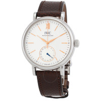Silver-tone stainless steel case with a brown leather strap. Fixed silver-tone stainless steel bezel. White dial with rose gold-tone hands and index hour markers. Minute markers around the outer rim. Dial Type: Analog. Date display at the 6 o'clock position. IWC Calibre 35160 automatic movement with a 50-hour power reserve. Scratch resistant sapphire crystal. Solid case back. Round case shape, case size: 39 mm. Fold over clasp with a safety release. Water resistant at 50 meters / 165 feet. Functions: date, hour, minute, second. Additional Info: original box, international warranty card, manual (complete accessories). Portofino Pointer Date Series. Luxury watch style. Watch label: Swiss Made. IWC Portofino Pointer Date Automatic White Dial Men's Watch IW359201. INFORMATION Brand: IWC Series: Portofino Pointer Date Collection Name: Portofino Pointer Date Gender: Mens Model: IW359201 Watch Label: Swiss Made Movement: Automatic Engine: IWC Calibre 35160 Power Reserve: 50 hours CASE Case Size: 39 mm Case Material: Stainless Steel Case Shape: Round Case Back: Solid BAND Band Material: Leather Band Type: Strap Band Color: Brown Clasp: Fold Over with Safety Release DIAL Dial Color: White Type: Analog Crystal: Scratch Resistant Sapphire Hands: Rose Gold-tone Dial Markers: Index Second Markers: Minute Markers around the outer rim Bezel: Fixed Bezel Color: Silver-tone Bezel Material: Stainless Steel FEATURES Water Resistance: 50 meters / 165 feet Calendar: Date display at the 6 o'clock position Functions: Date, Hour, Minute, Second Watch Features: Stainless Steel, Leather, Gold, Analog ADDITIONAL INFO Watch Style: Luxury Warranty: 2 Year Jomashop Warranty Additional Info: Original Box, International Warranty Card, Manual (Complete Accessories) Jomashop Sku: IWC359201 Department: Watches Category: Watches