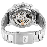 Stainless steel case with a stainless steel bracelet. Fixed stainless steel bezel. Blue dial with luminous silver-tone hands and Arabic numeral hour markers. Arabic numeral minute markers (at 5 minute intervals). Minute markers around the outer rim. Dial Type: Analog. Luminescent hands. Date display above the 6 o'clock position. Chronograph - two sub-dials displaying: 60 second and 60 minute. IWC calibre 89361 automatic movement, based upon IWC 89360, containing 38 Jewels, and has a power reserve of approximately 68 hours. Scratch resistant sapphire crystal. Screw down crown. Transparent case back. Round case shape. Case size: 44.6 mm. Case thickness: 14.3 mm. Band width: 22 mm. Deployment clasp. Water resistant at 60 meters / 200 feet. Functions: chronograph, flyback, date, hour, minute, small second. Portugieser Series. Luxury watch style. Watch label: Swiss Made. IWC Portugieser Yacht Club Chronograph Automatic Blue Dial Men's Watch IW390701. INFORMATION Brand: IWC Series: Portugieser Collection Name: Portugieser Gender: Mens Model: IW390701 Watch Label: Swiss Made Movement: Automatic Engine: IWC Calibre 89361 Power Reserve: 68 hours CASE Case Size: 44.6 mm Case Thickness: 14.3 mm Case Material: Stainless Steel Case Shape: Round Case Back: Transparent BAND Band Material: Stainless Steel Band Type: Bracelet Band Color: Silver-tone Band Width: 22 mm Clasp: Deployment DIAL Dial Color: Blue Type: Analog Crystal: Scratch Resistant Sapphire Hands: Luminous Silver-tone Dial Markers: Arabic Numeral Second Markers: Arabic Numeral Minute Markers (at 5 minute intervals). Minute Markers around the outer rim Sub Dials: Two - 60 Second and 60 Minute Luminiscence: Hands Bezel: Fixed Bezel Color: Silver-tone Bezel Material: Stainless Steel Crown: Screw Down FEATURES Water Resistance: 60 meters / 200 feet Calendar: Date display above the 6 o'clock position Functions: Chronograph, FlyBack, Date, Hour, Minute, Small Second Watch Features: Chronograph, Stainless Steel, Flyback, Analog ADDITIONAL INFO Watch Style: Luxury Warranty: 2 Year Jomashop Warranty Jomashop Sku: IWC3907-01 Department: Watches Category: Watches